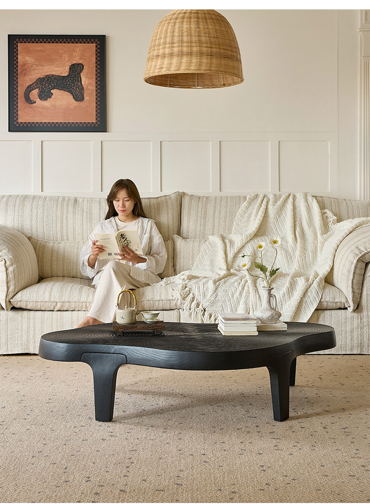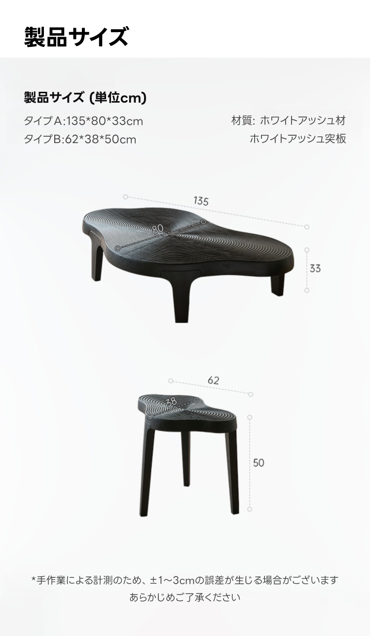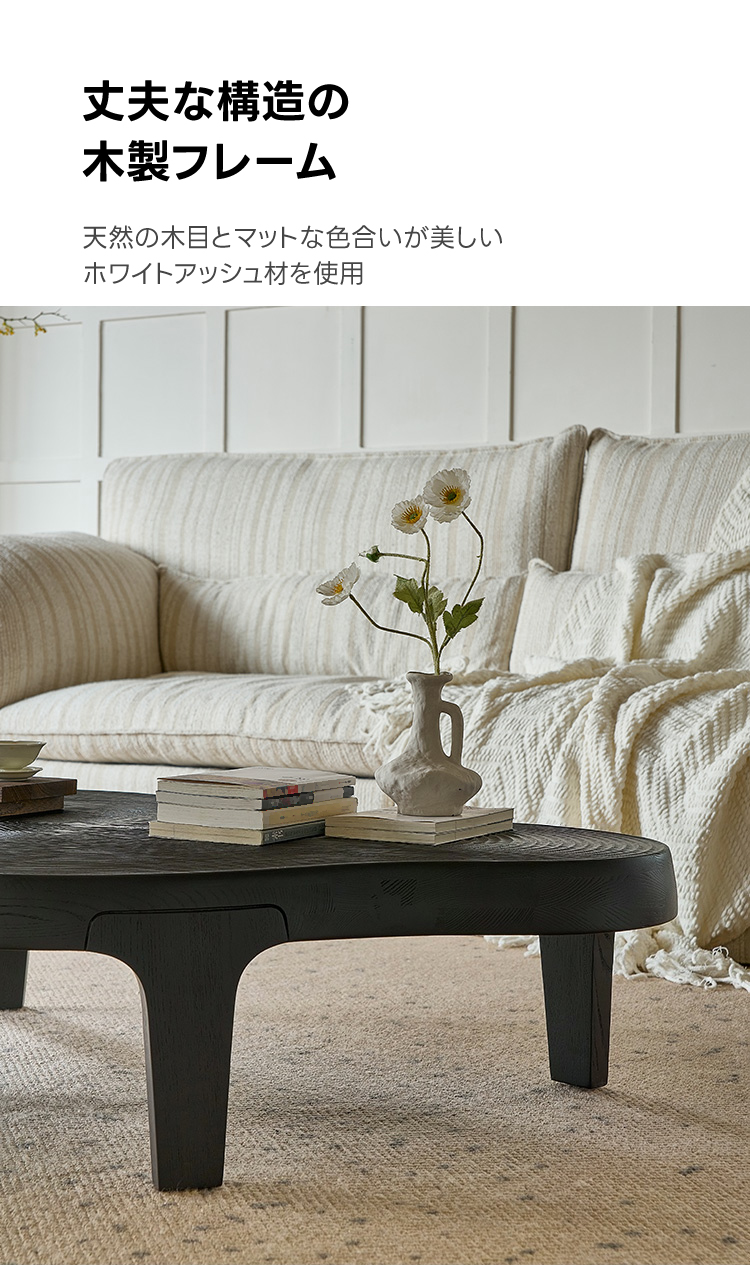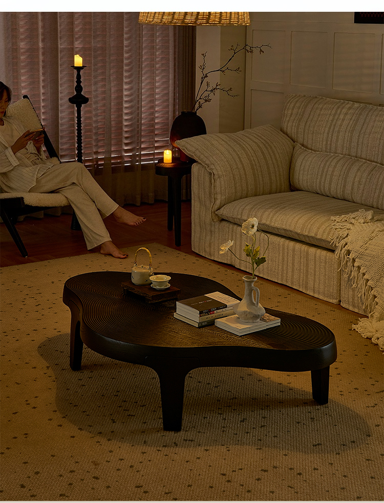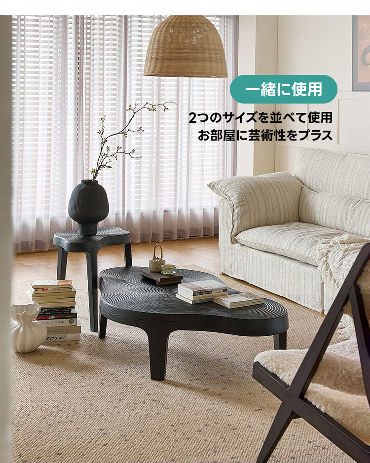 - 【ユニークなデザイン】ウェーブラインローテーブルは、滑らかに流れる不規則なフォルムが特徴です。一般的なテーブルとは異なり、モダンでスタイリッシュなデザインがリビングを彩ります。