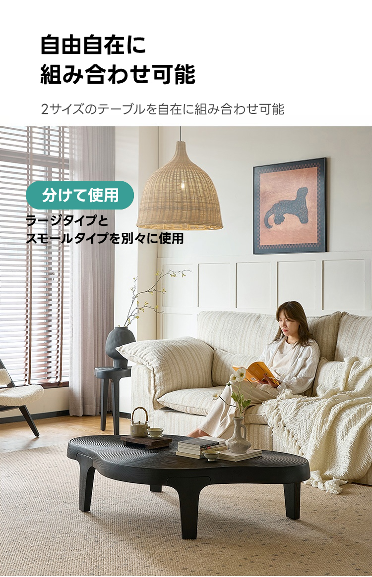 - 【多様な使用シーン】一人暮らしやカップル、ファミリーのリビングにぴったりのサイズで、どんな空間にも自然に溶け込みます。組み合わせ自由な2サイズのテーブルで、用途に応じて使い分け可能です。