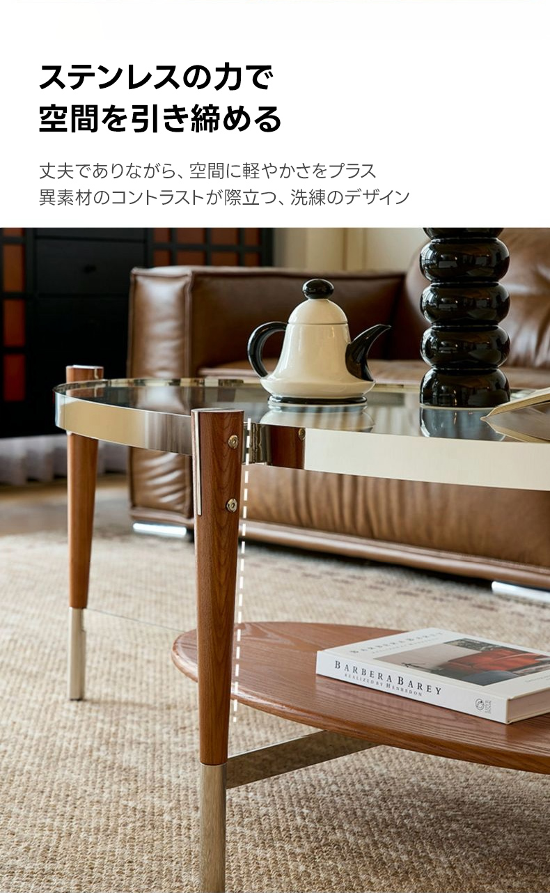- 【高品質な素材とデザイン】ホワイトアッシュ材と304ステンレスを組み合わせた脚部は、木の温かみとステンレスのモダンな印象が絶妙にマッチ。どんなインテリアにも自然に溶け込みます。