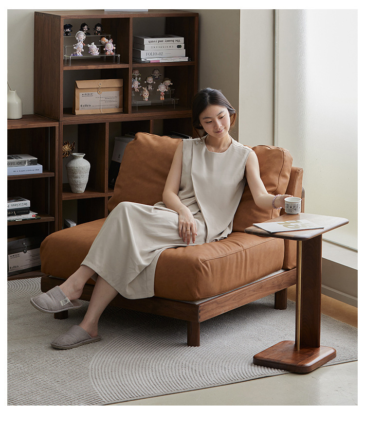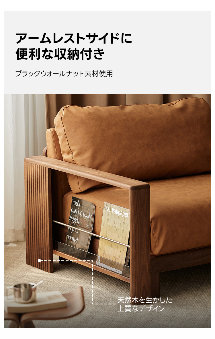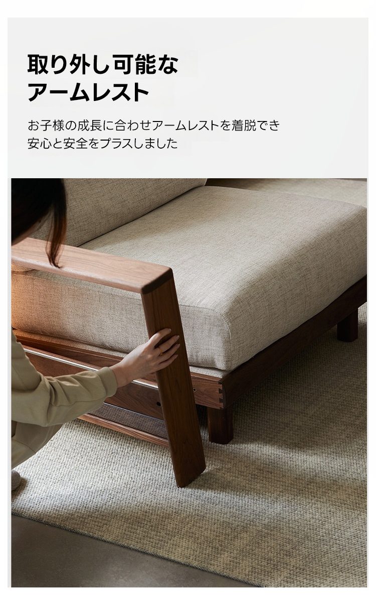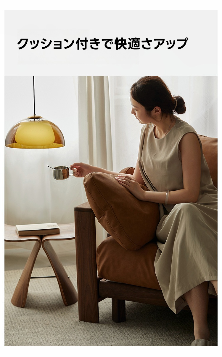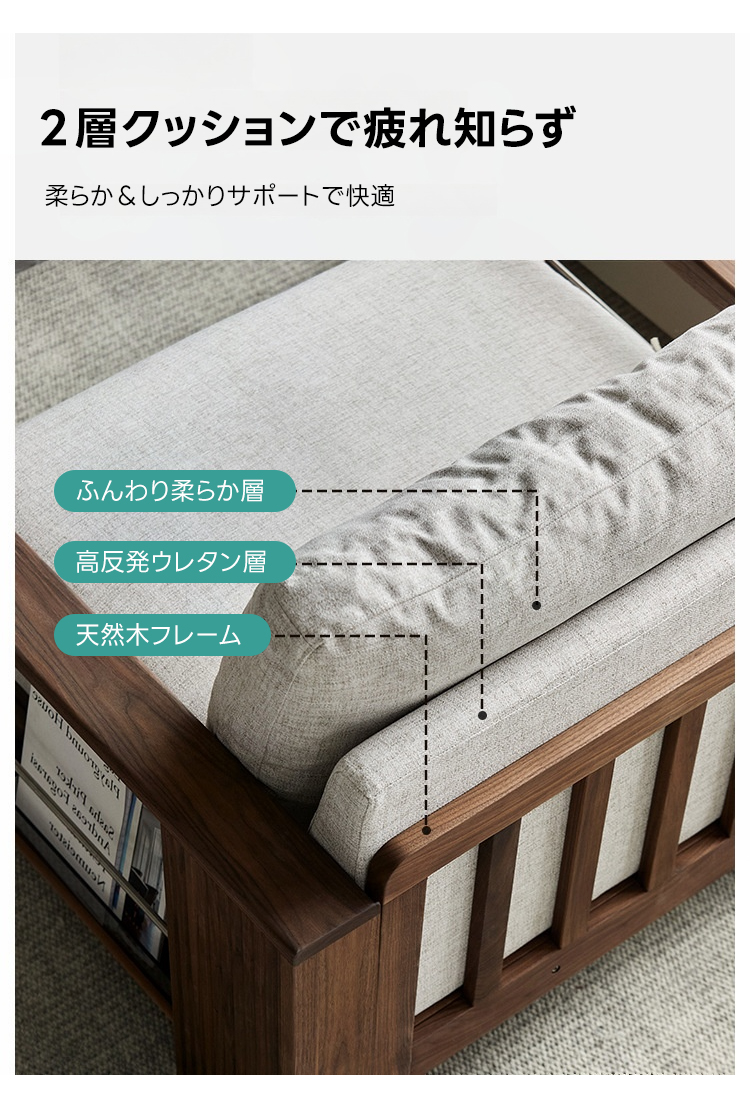 - 【高品質な素材と洗練されたデザイン】ウォールナット材を使用したフレームは耐久性と高級感を兼ね備えています。防水・防汚加工が施されたエコレザーとコットンリネンでお手入れも簡単。高品質なグースダウンとPP綿のクッションがふわふわ感を提供します。