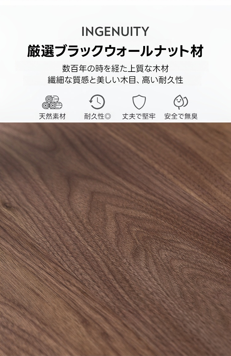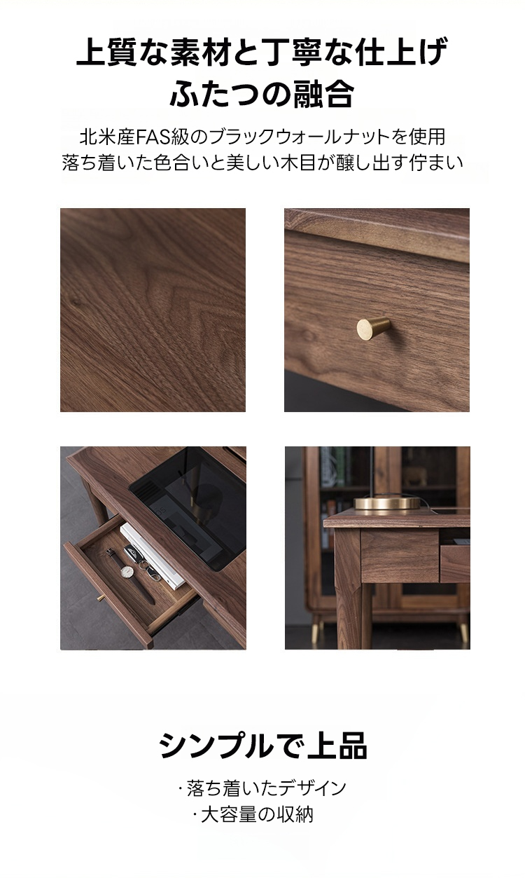 - 【高品質な素材とデザイン】このデスクは、北米産FAS級ブラックウォールナットを使用し、耐久性と耐腐食性に優れています。シンプルで趣のあるデザインと滑らかな面取り加工が施され、上品で洗練された雰囲気を演出します。