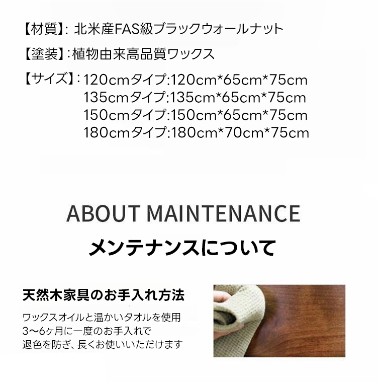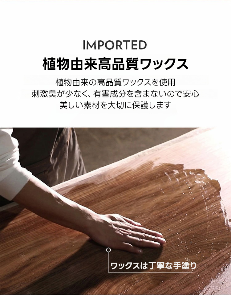 - 【サイズバリエーションとメンテナンス】幅120cmから180cmのサイズバリエーションがあり、植物由来の高品質ワックスで仕上げられているため、安心して使用できます。定期的なお手入れで美しい状態を保てます。
