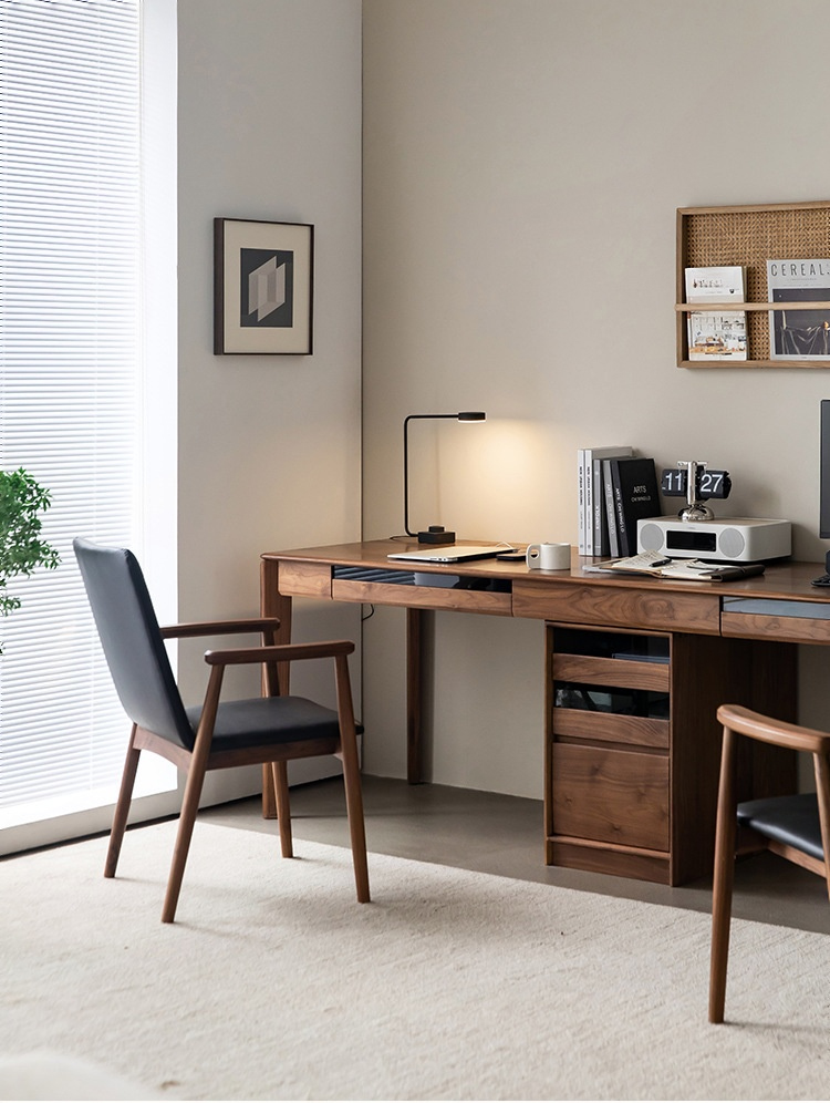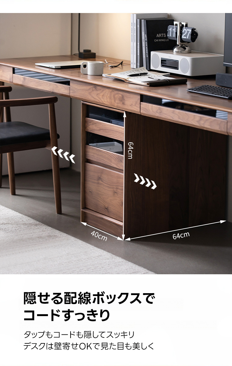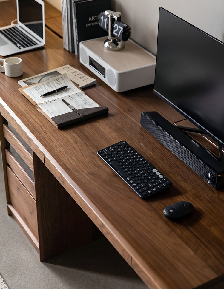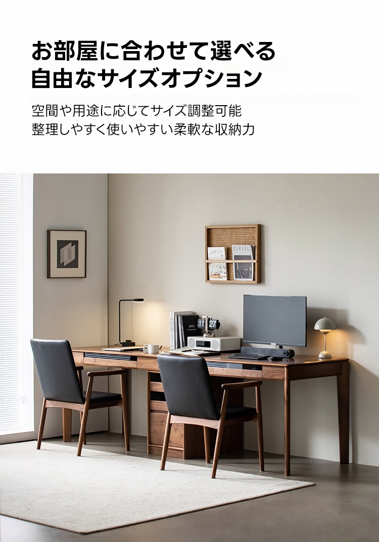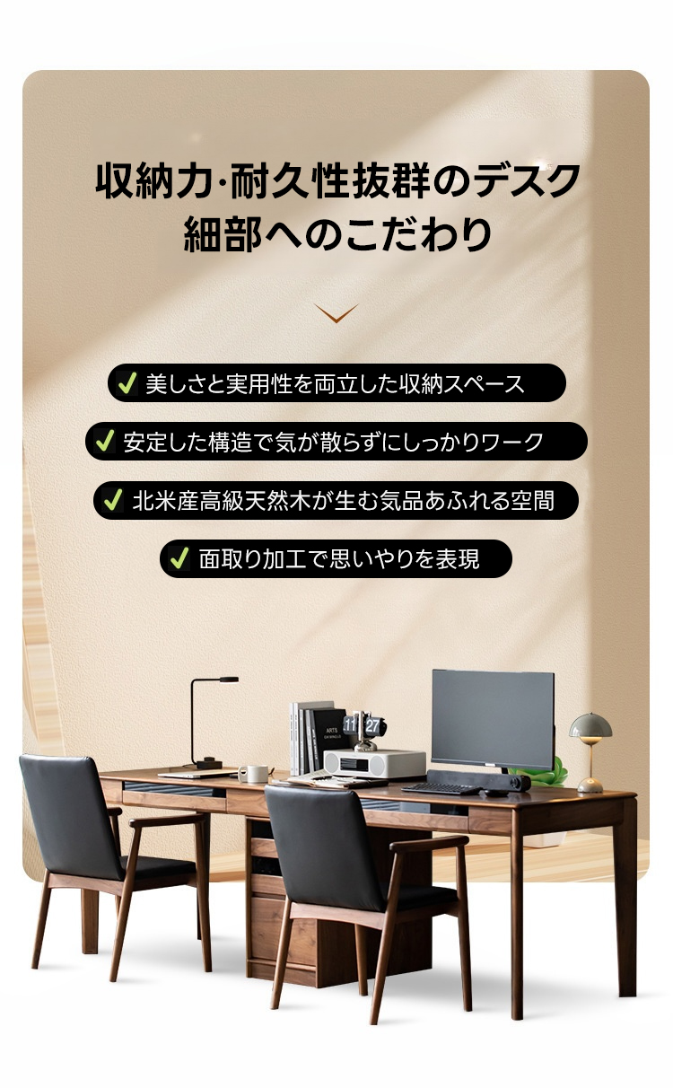 - 【多様な使用シーンに対応】このデスクは、一人暮らしやホームオフィス、書斎に最適です。ナチュラルなブラウンのウォールナット材が、どんなインテリアにも自然に溶け込みます。幅広いサイズ展開で、お部屋のスペースや用途に合わせて選べます。