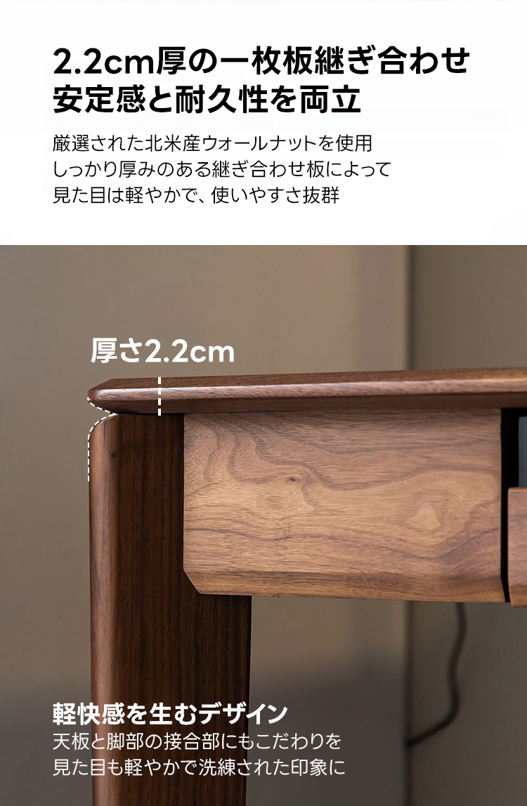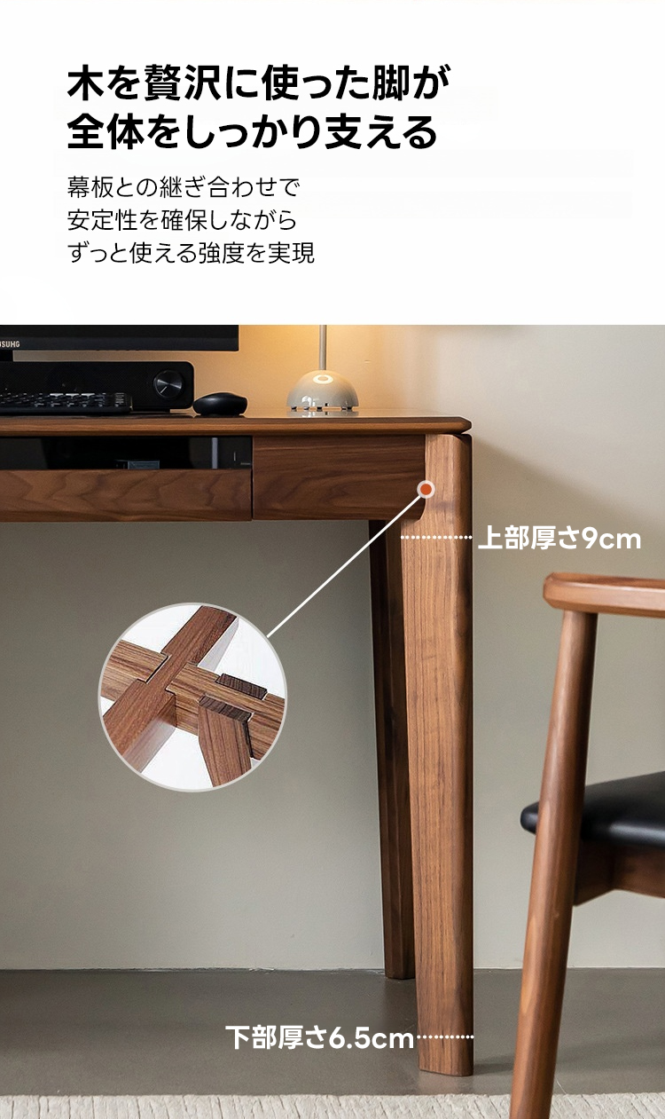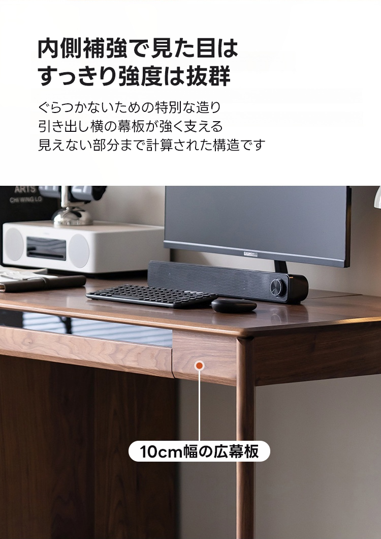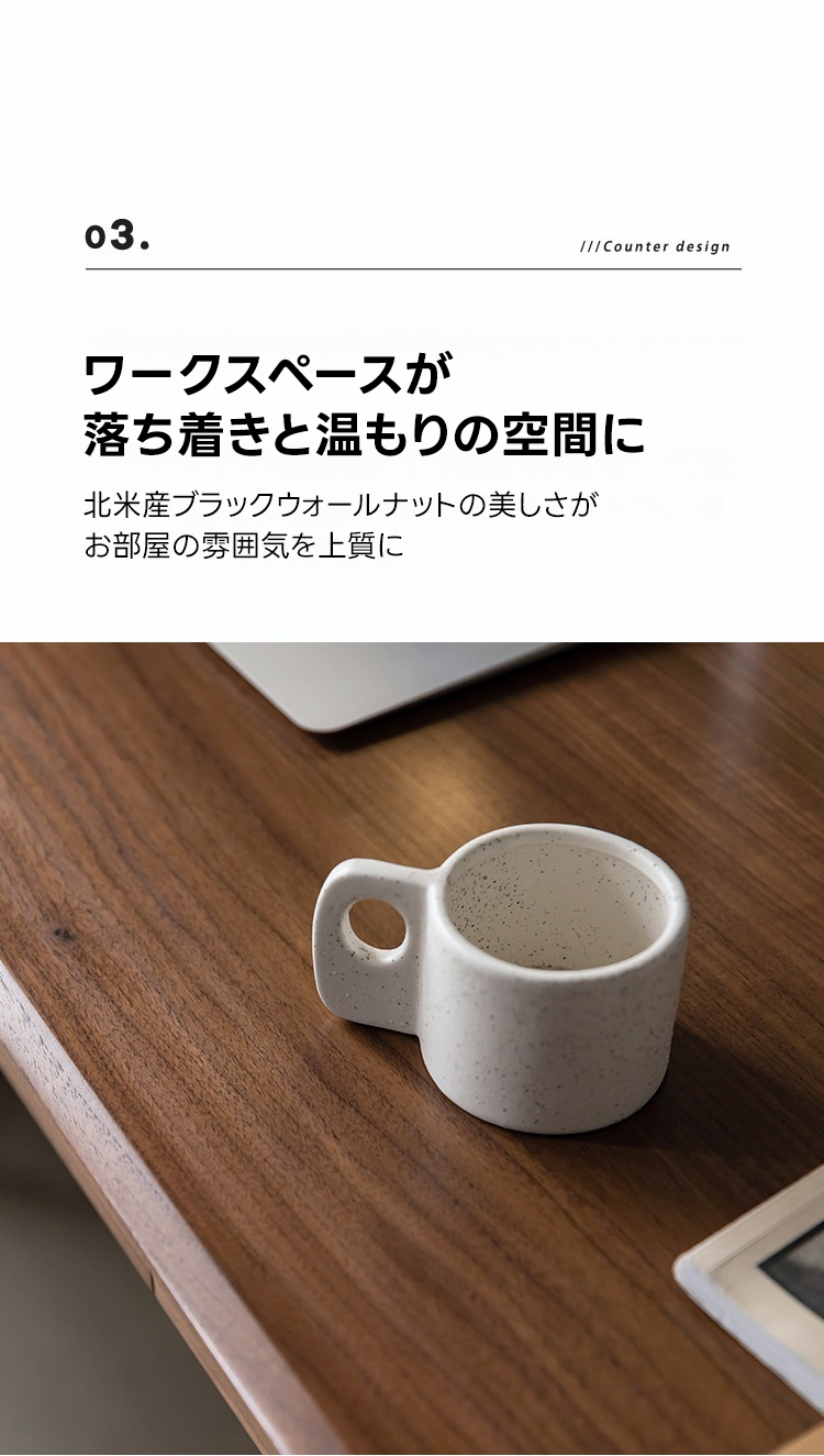 - 【長く愛用できる一品】使い込むほどに深まる天然木の味わいが魅力で、長く愛用できるデスクです。自然の温もりを感じさせるデザインが、自宅のインテリアに美しさと機能性を加えます。