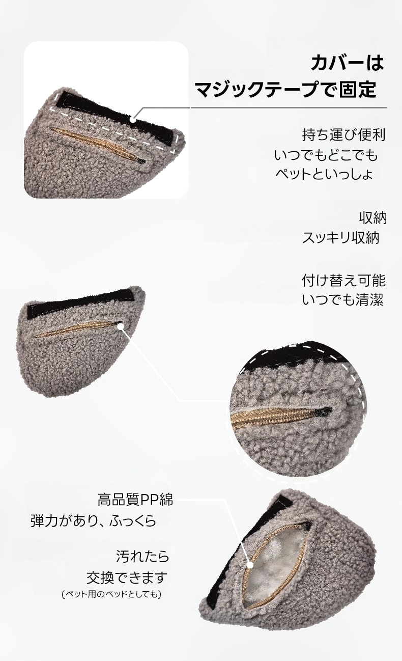 - 【清潔に保てるデザイン】:カバーはマジックテープで固定されており、取り外して洗えるので清潔に保つことができます。ペットと一緒に過ごす時間をさらに楽しく、快適にしてくれるアイテムです。