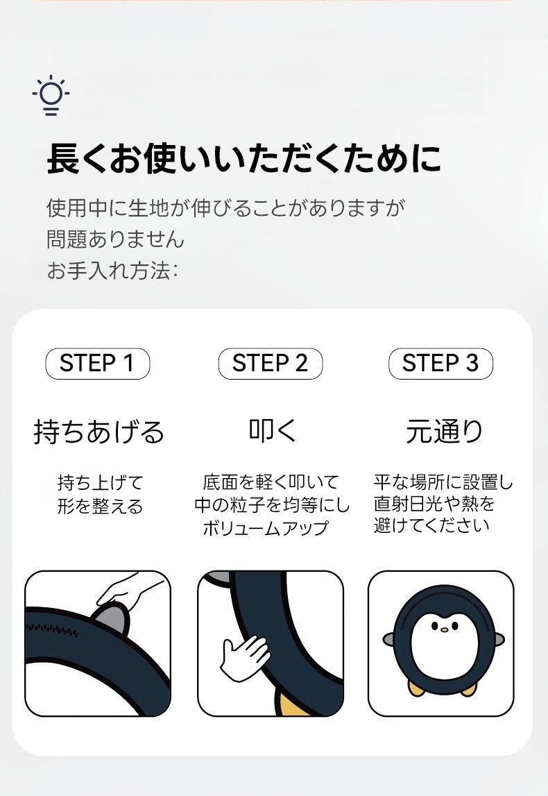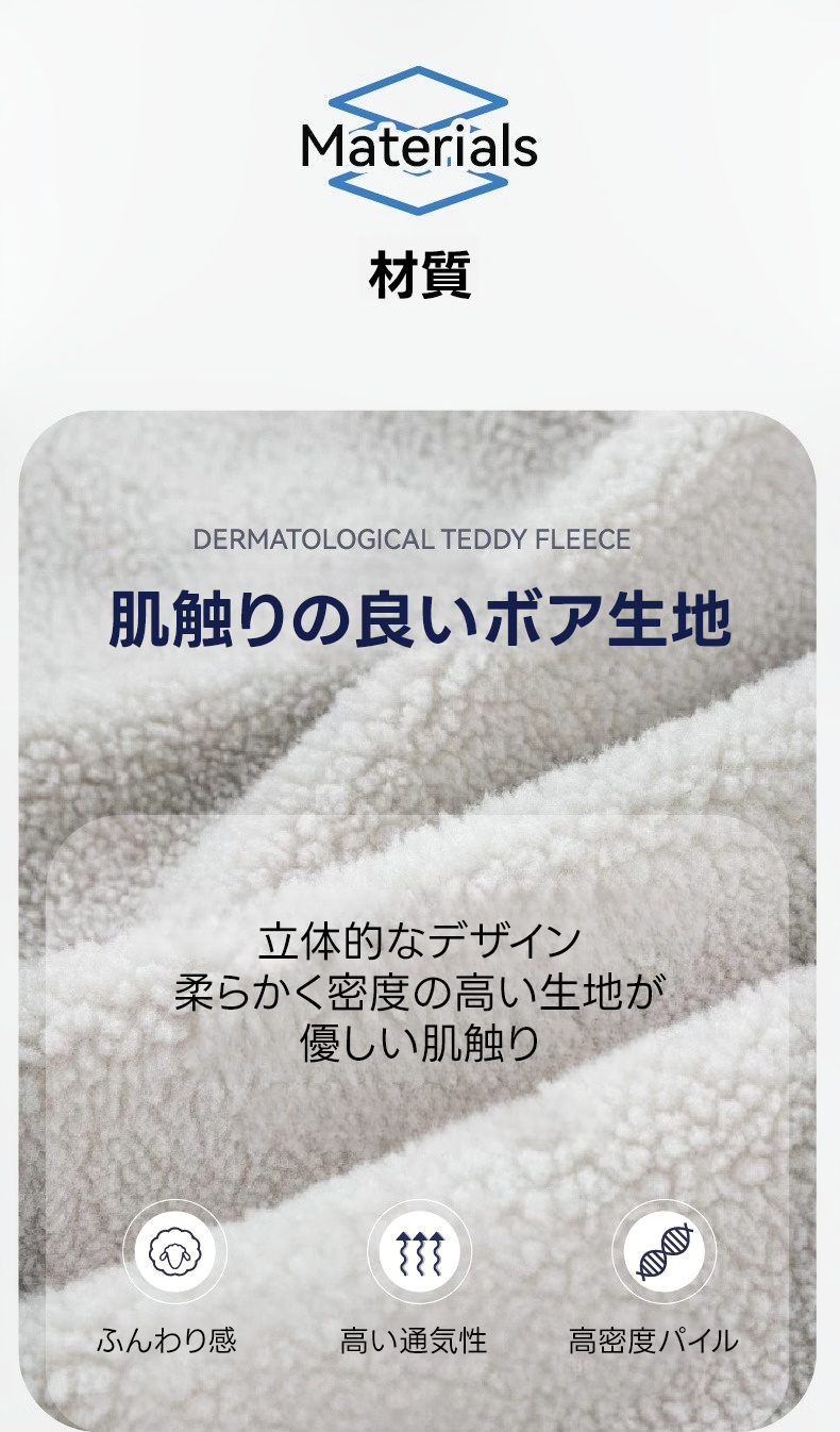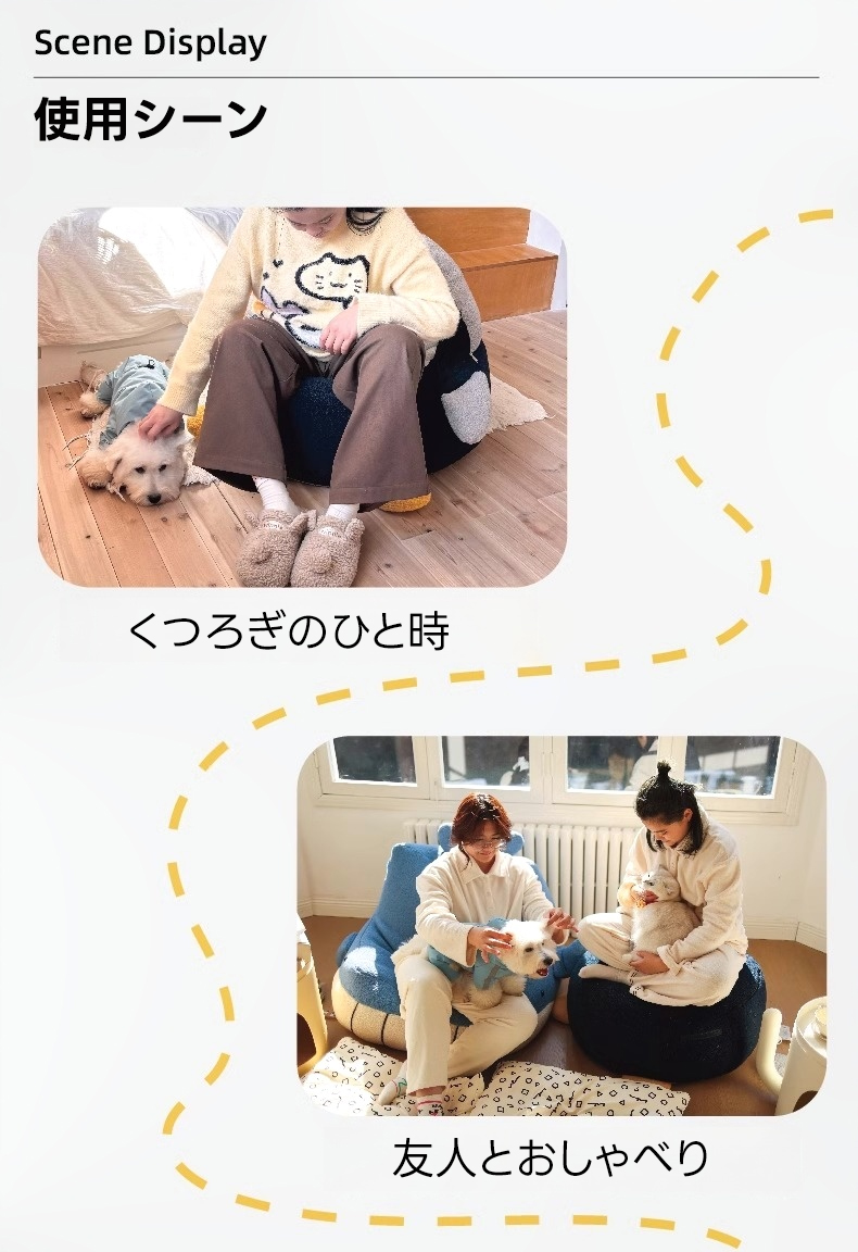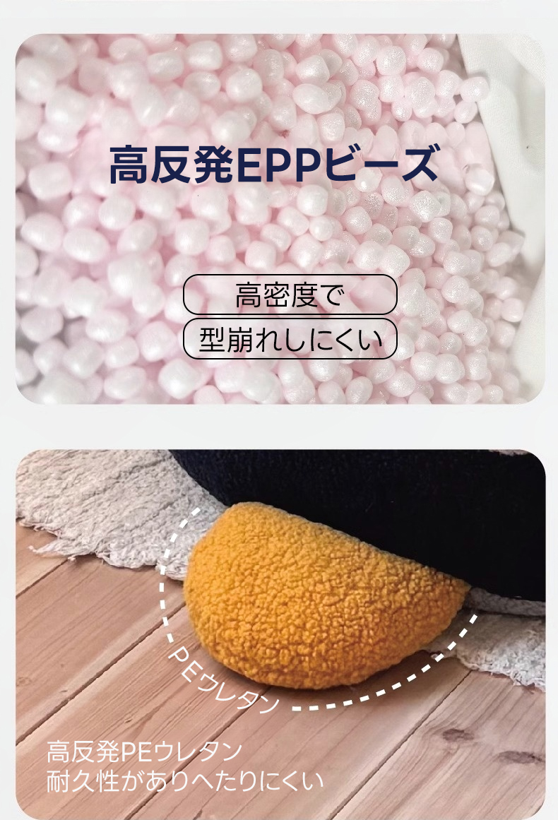 - 【高品質な素材とデザイン】:表地には肌触りの良いボア生地を使用し、内側には高反発EPPビーズとパール綿を詰め込んでいます。これにより、柔らかさと耐久性を兼ね備えています。