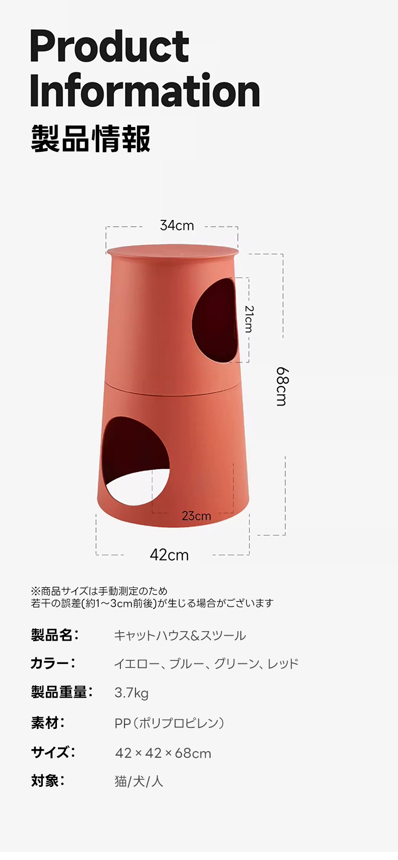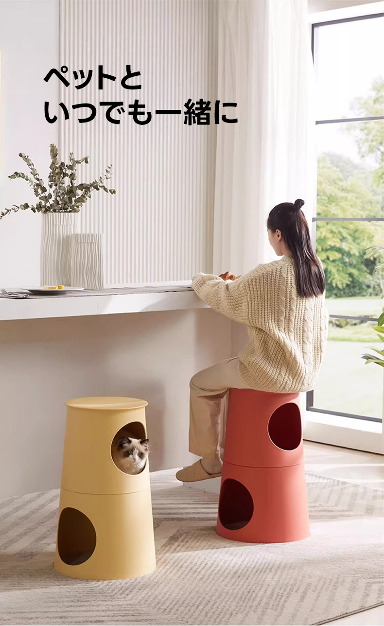 - 【多機能デザイン】キャットハウス&スツールは、ペットの隠れ家としても人間のスツールとしても使用可能な多機能デザインです。組み立てが簡単で、特別な工具を必要としないため、どなたでも手軽に設置できます。