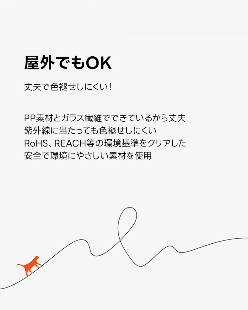 - 【素材と品質】PP(ポリプロピレン)素材を使用し、紫外線に強く色褪せしにくい耐久性を実現。環境基準をクリアした安全で環境に優しい素材が使用されており、安心してお使いいただけます。