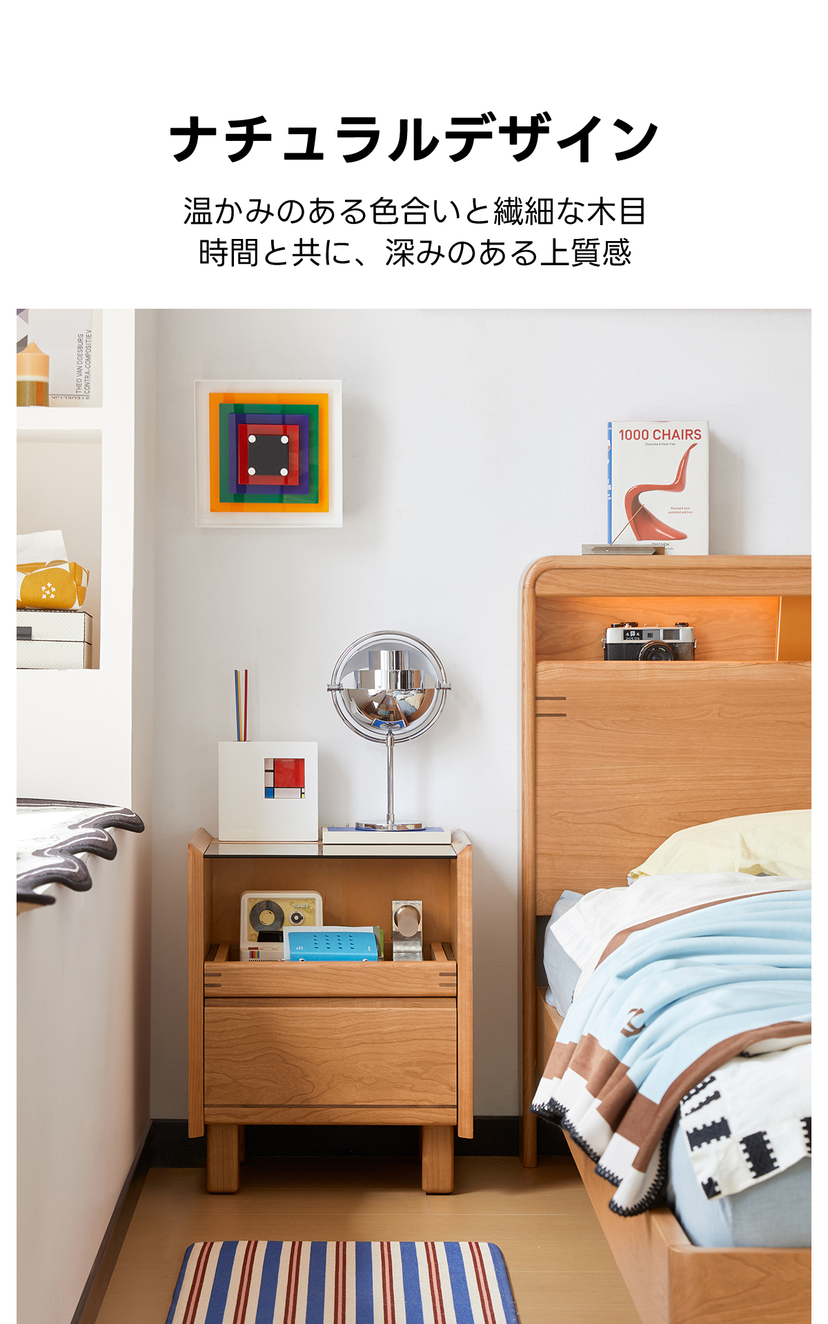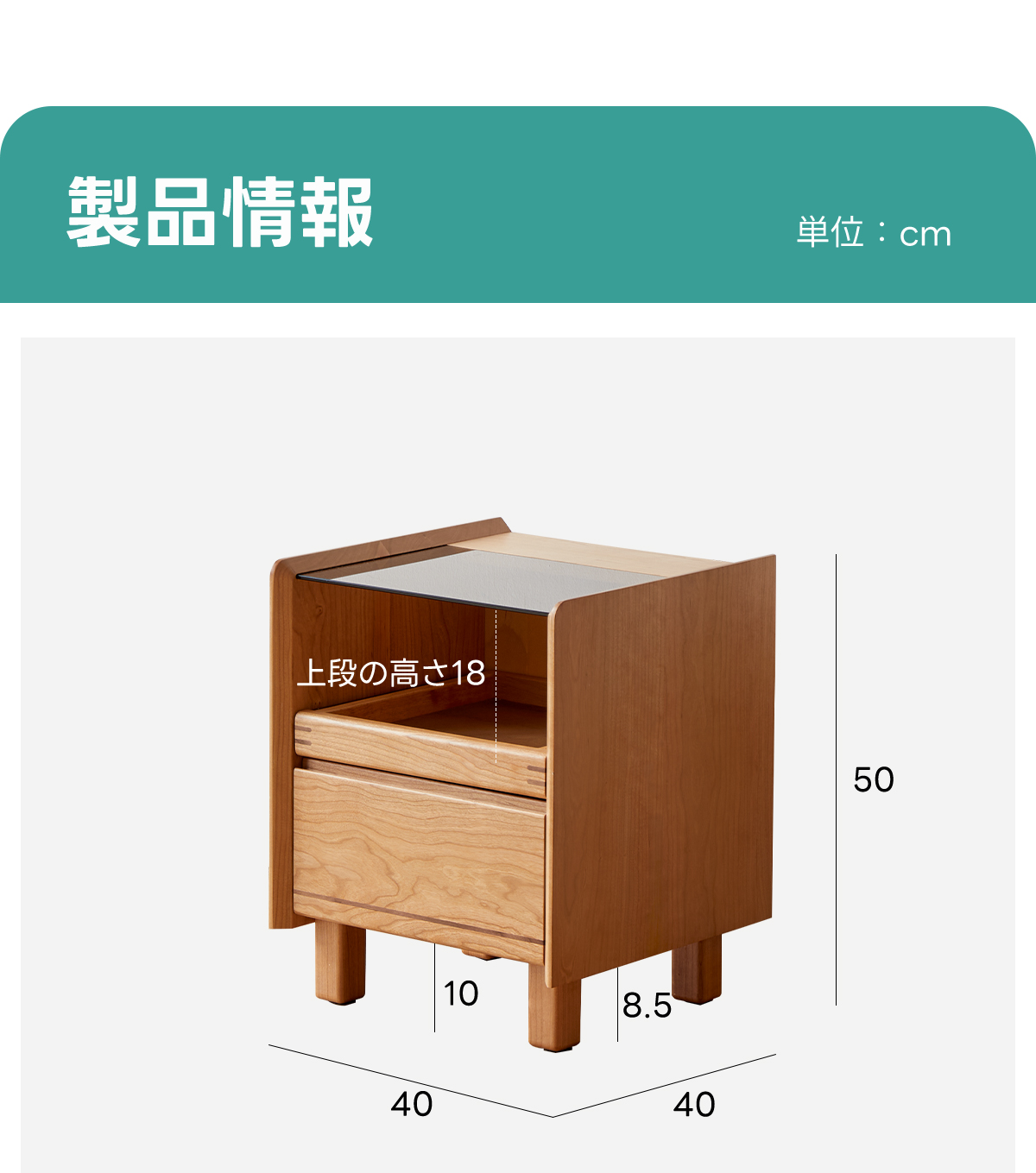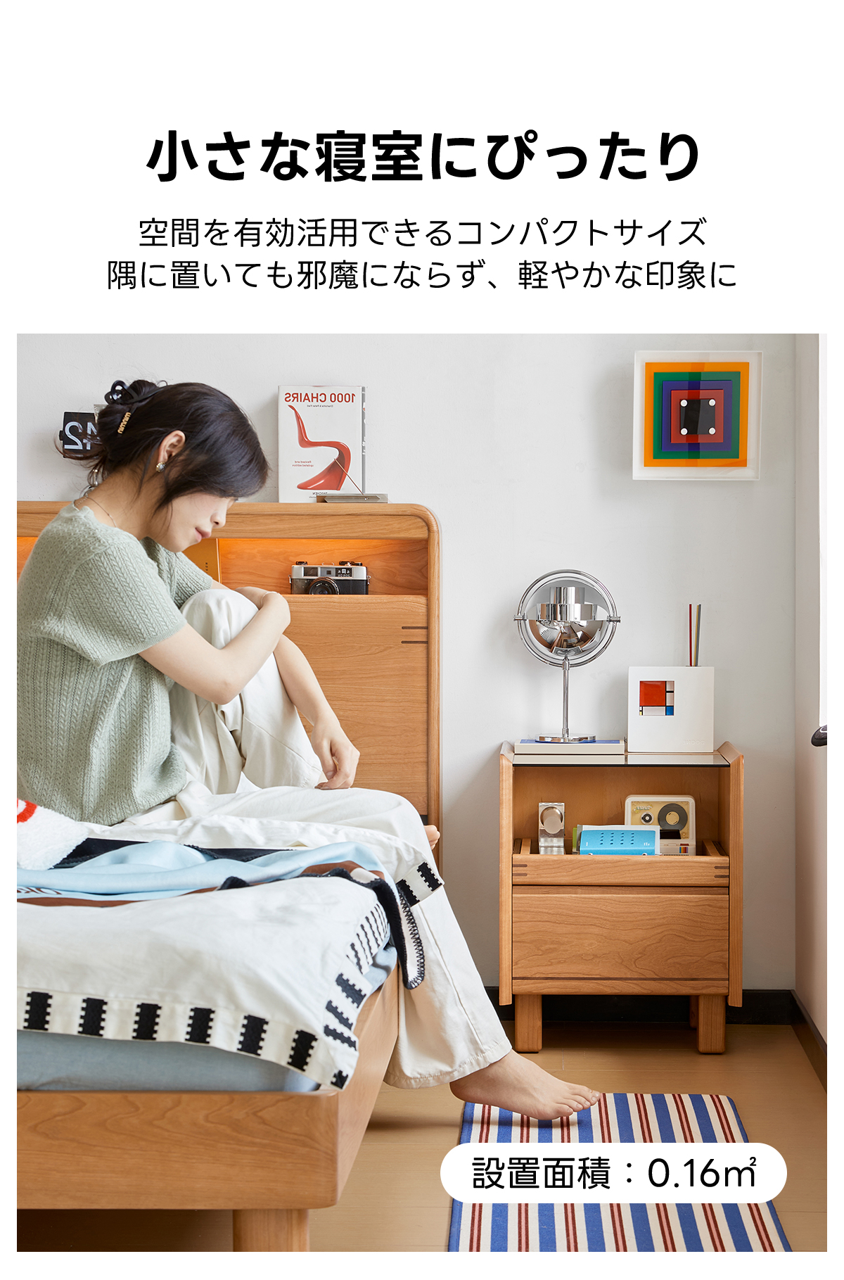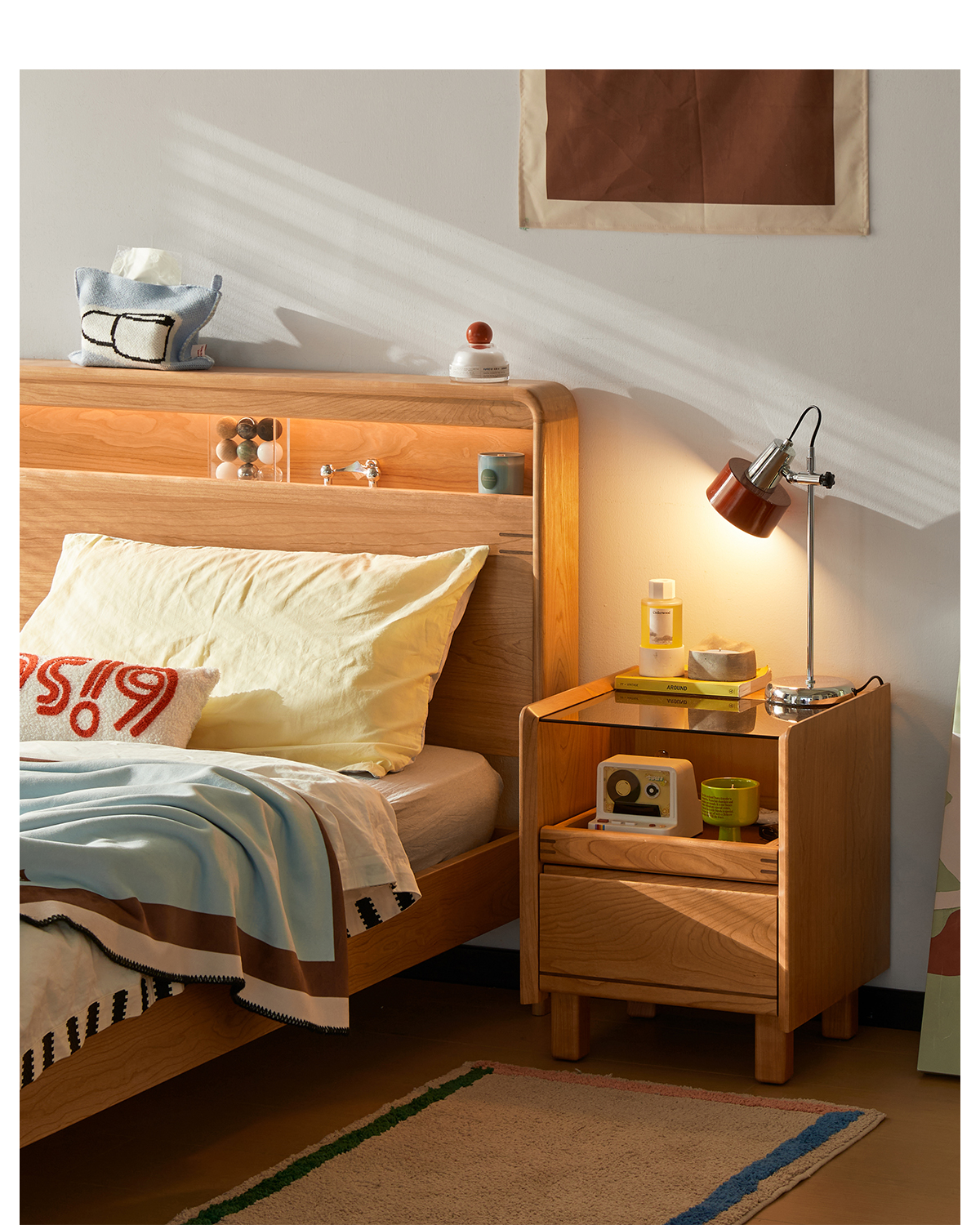 - 【ナチュラルなデザインと高い耐久性】:ウッドナイトキャビネットは、アメリカ北部のFAS級チェリー材を使用し、ナチュラルで温かみのあるデザインが特徴です。ブラウンガラスの天板が上品さを引き立て、どんなインテリアにも馴染みます。