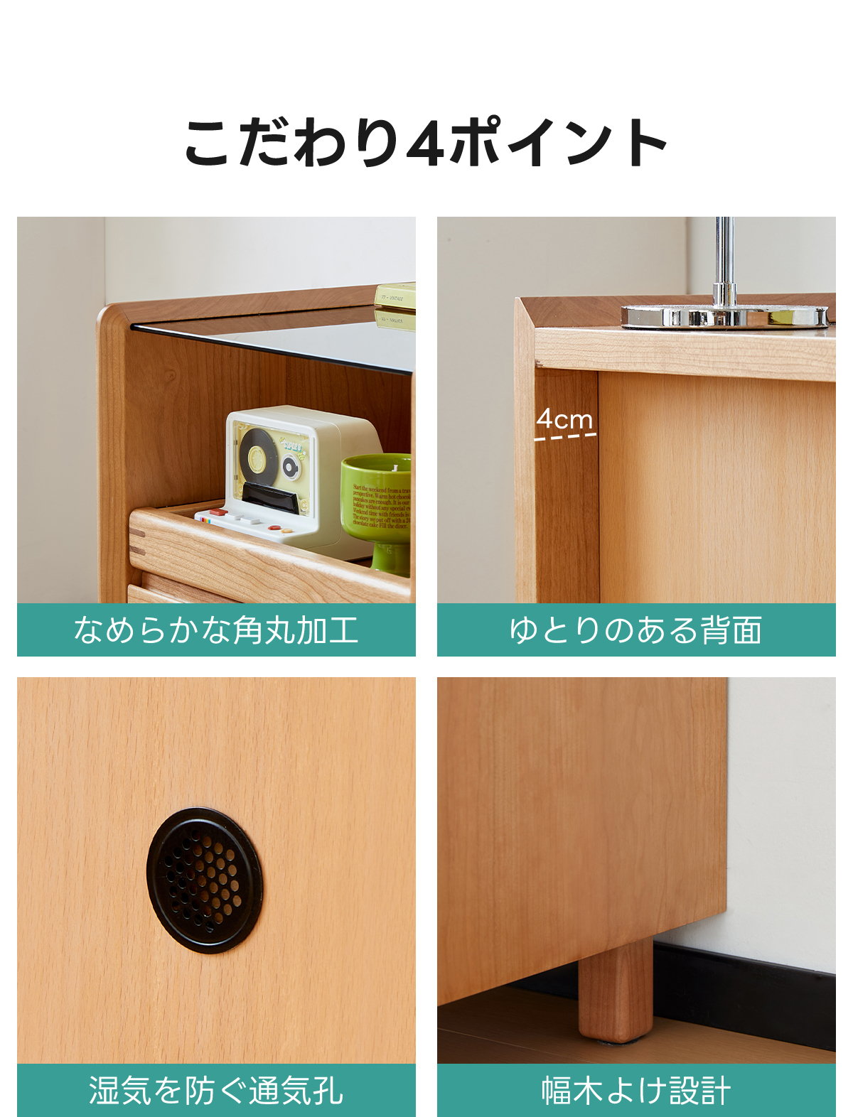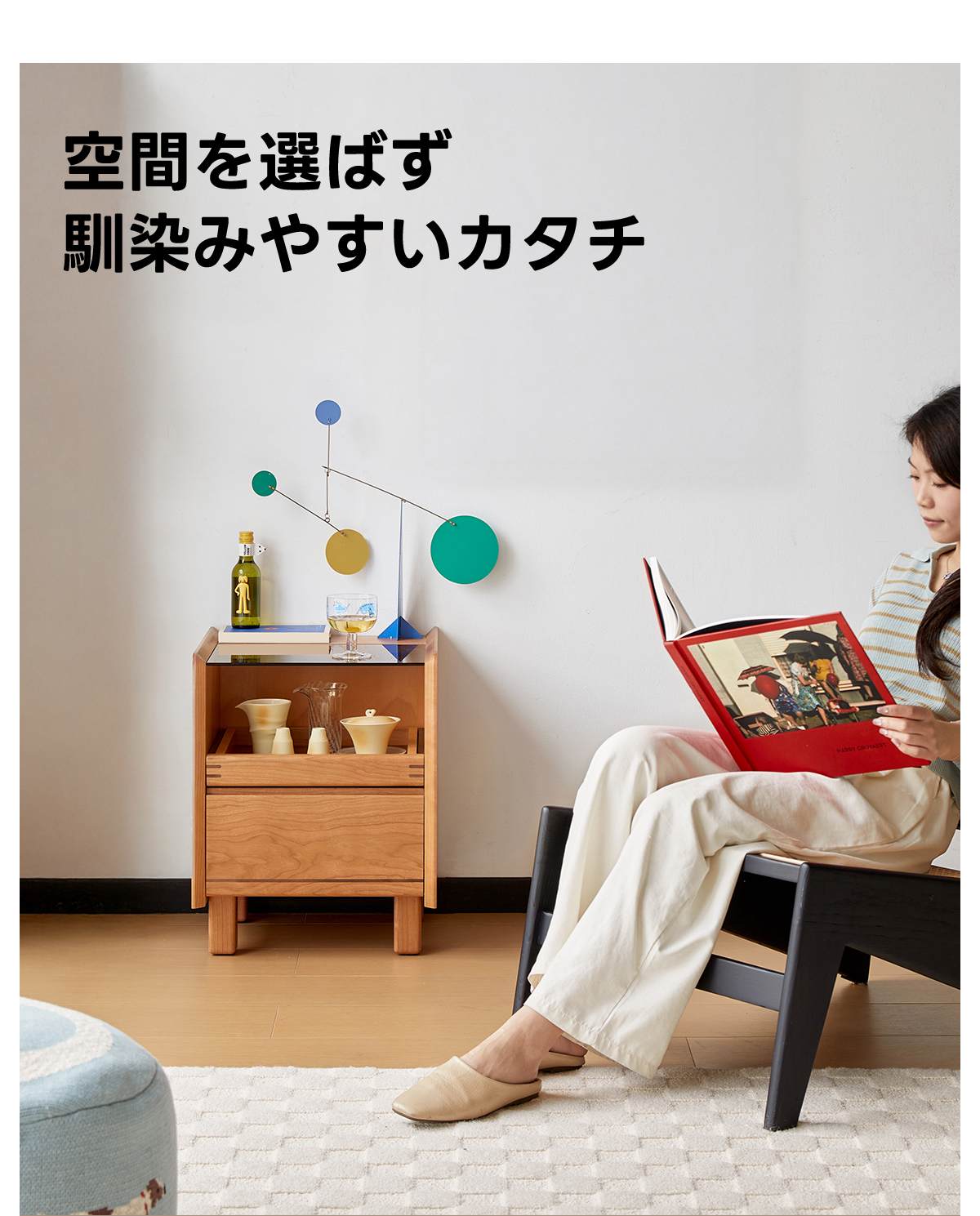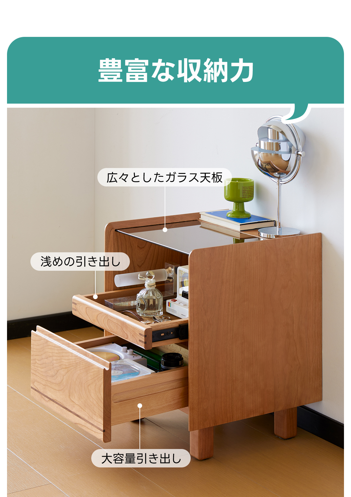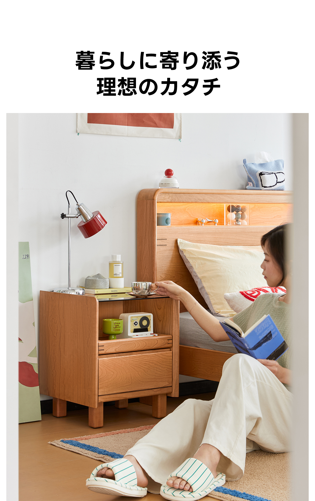 - 【ナチュラルなデザインと高い耐久性】:ウッドナイトキャビネットは、アメリカ北部のFAS級チェリー材を使用し、ナチュラルで温かみのあるデザインが特徴です。ブラウンガラスの天板が上品さを引き立て、どんなインテリアにも馴染みます。