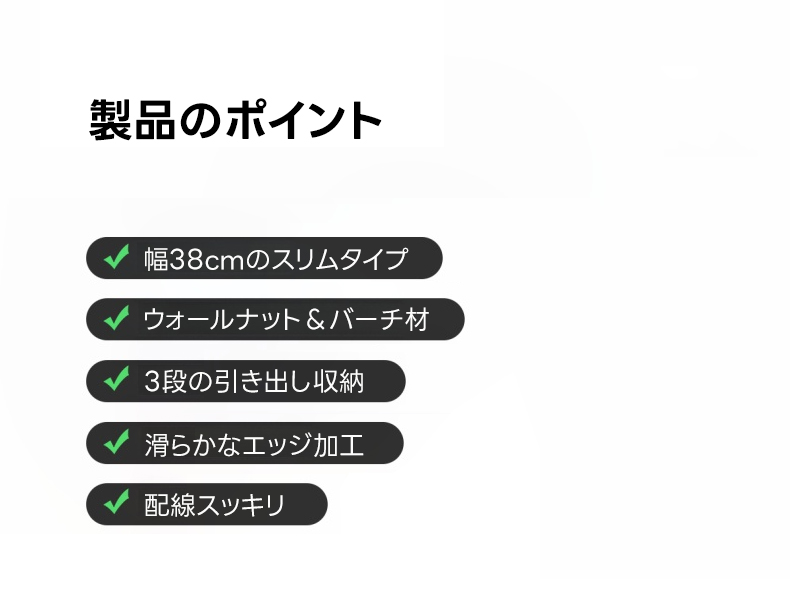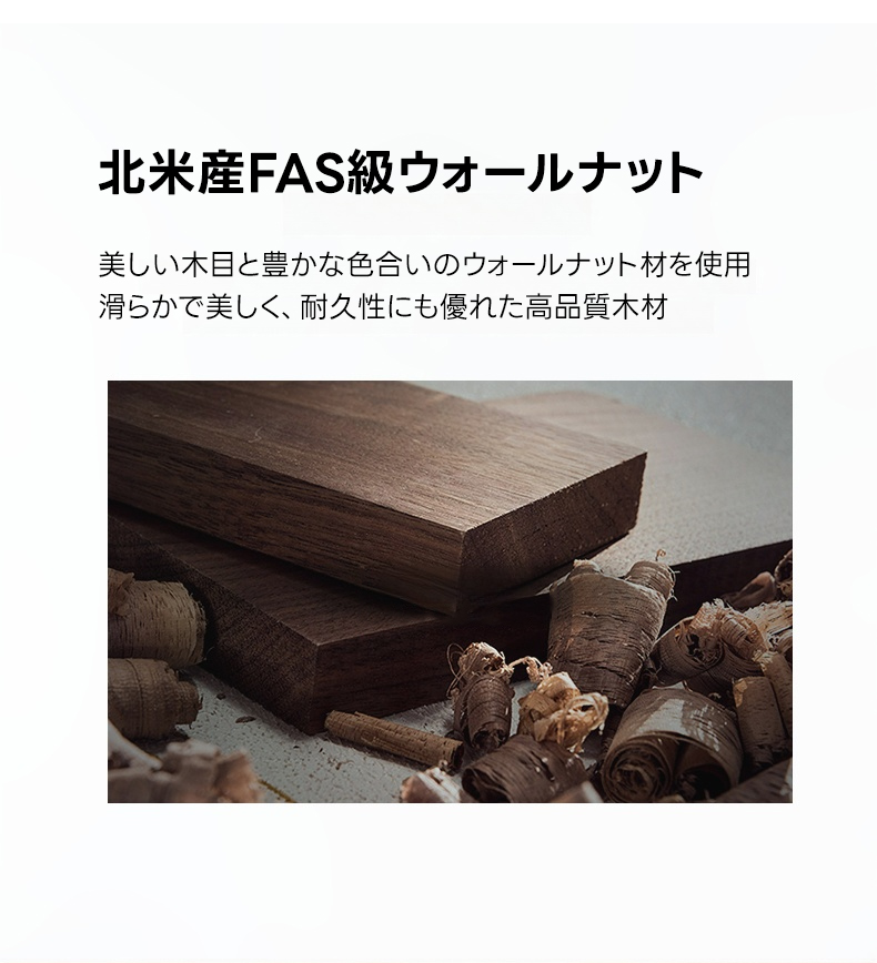 - 【高品質な材料とデザイン】:北米産FAS級ウォールナット材とロシア産バーチ材を使用し、滑らかなエッジ加工が施されています。ドイツ製オスモウッドワックスで環境に優しい仕上げを実現しました。