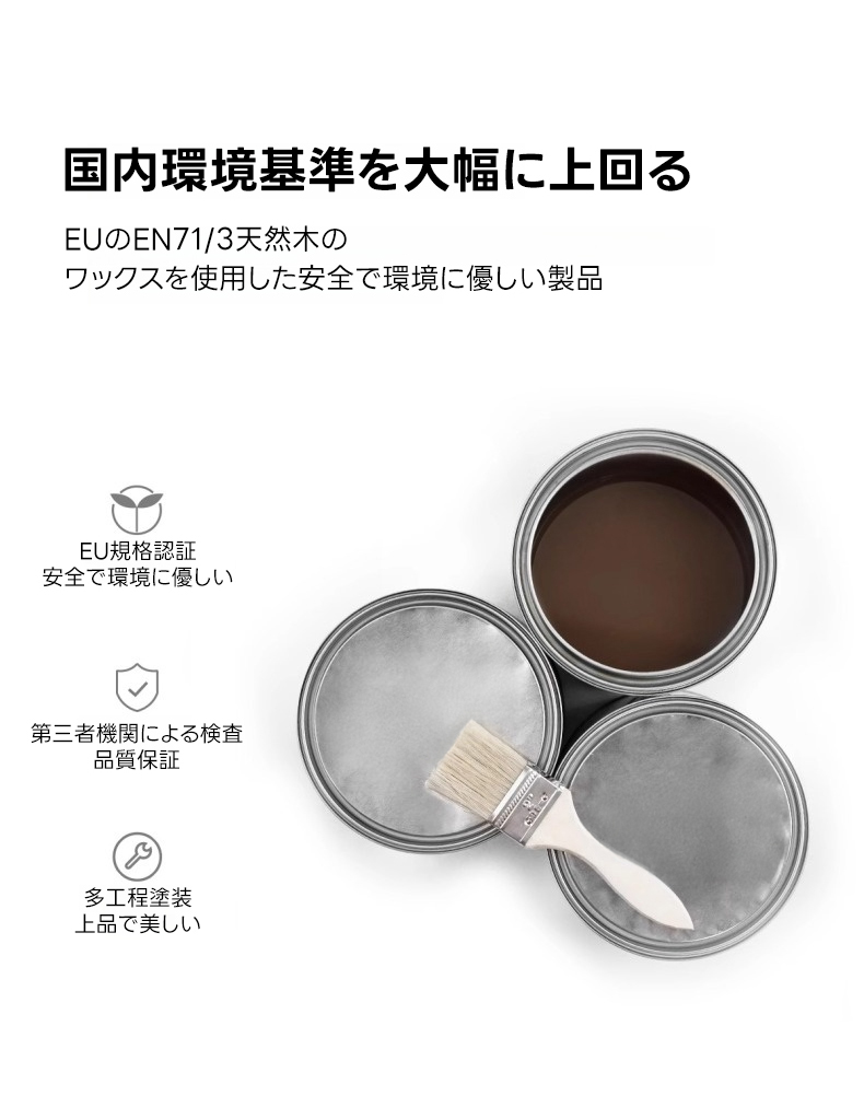 - 【安心の安全設計】:角丸加工が施され、小さなお子様がいる家庭でも安心して使用できます。EUのEN71/3基準を大幅に上回る環境に優しい製品です。