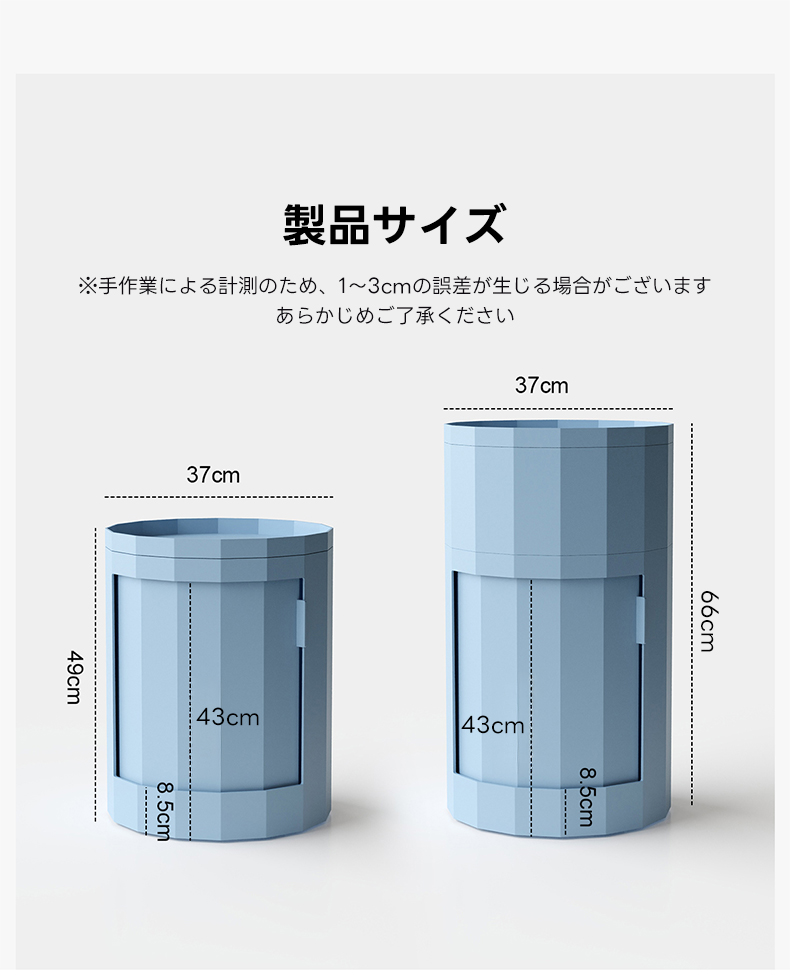 - 【コンパクトで省スペース】スリムサイドキャビネットは、設置面積わずか0.1㎡で、狭いスペースでも有効活用できます。高さは49cmと66cmの2種類から選べ、どんな部屋にもフィットします。