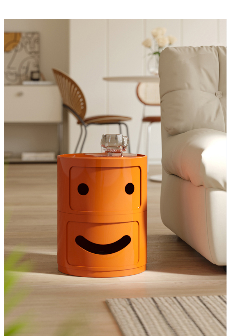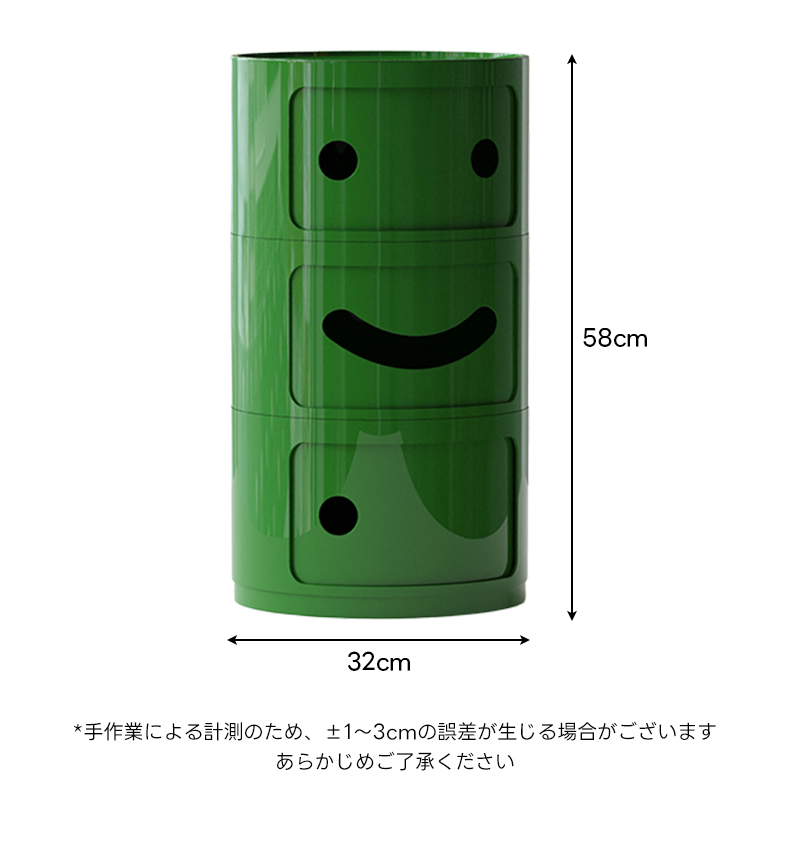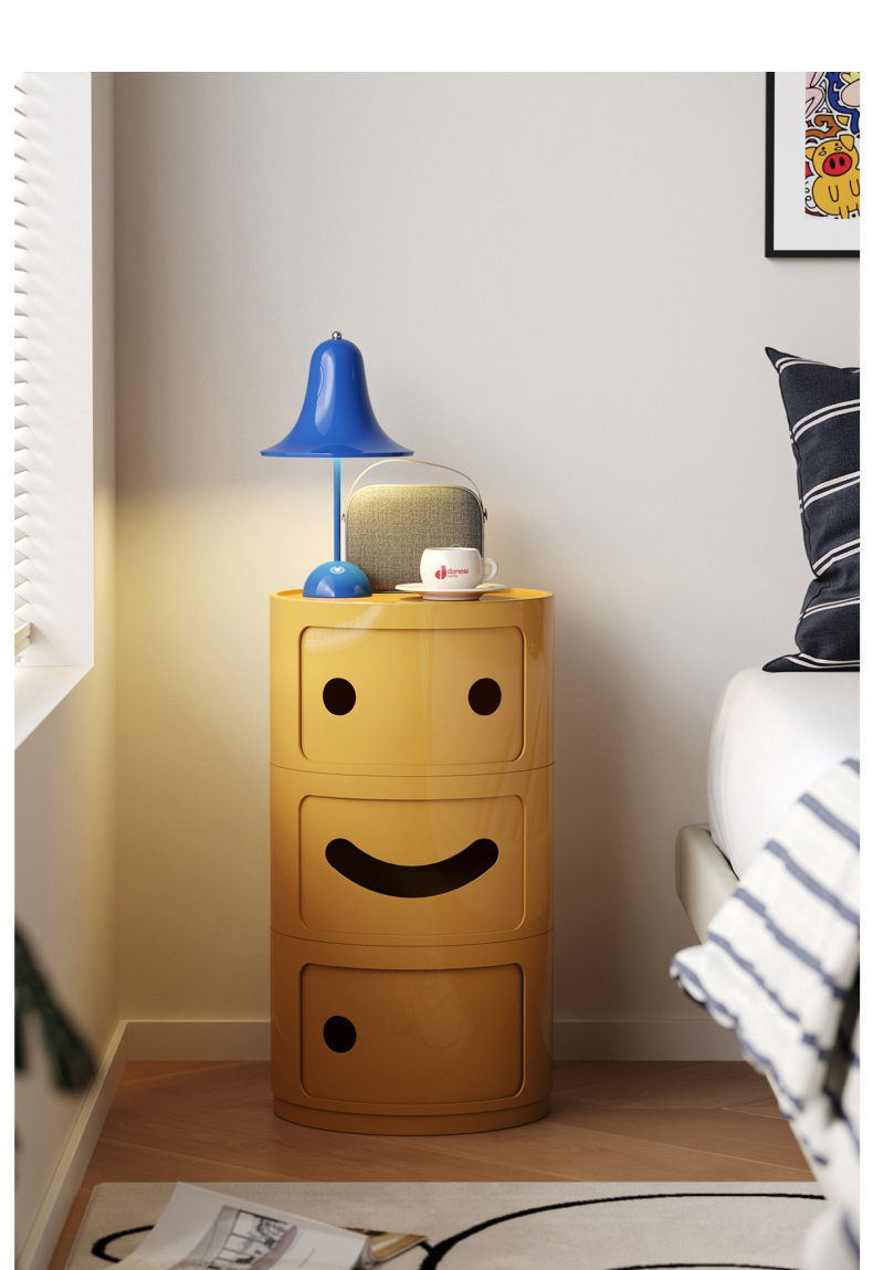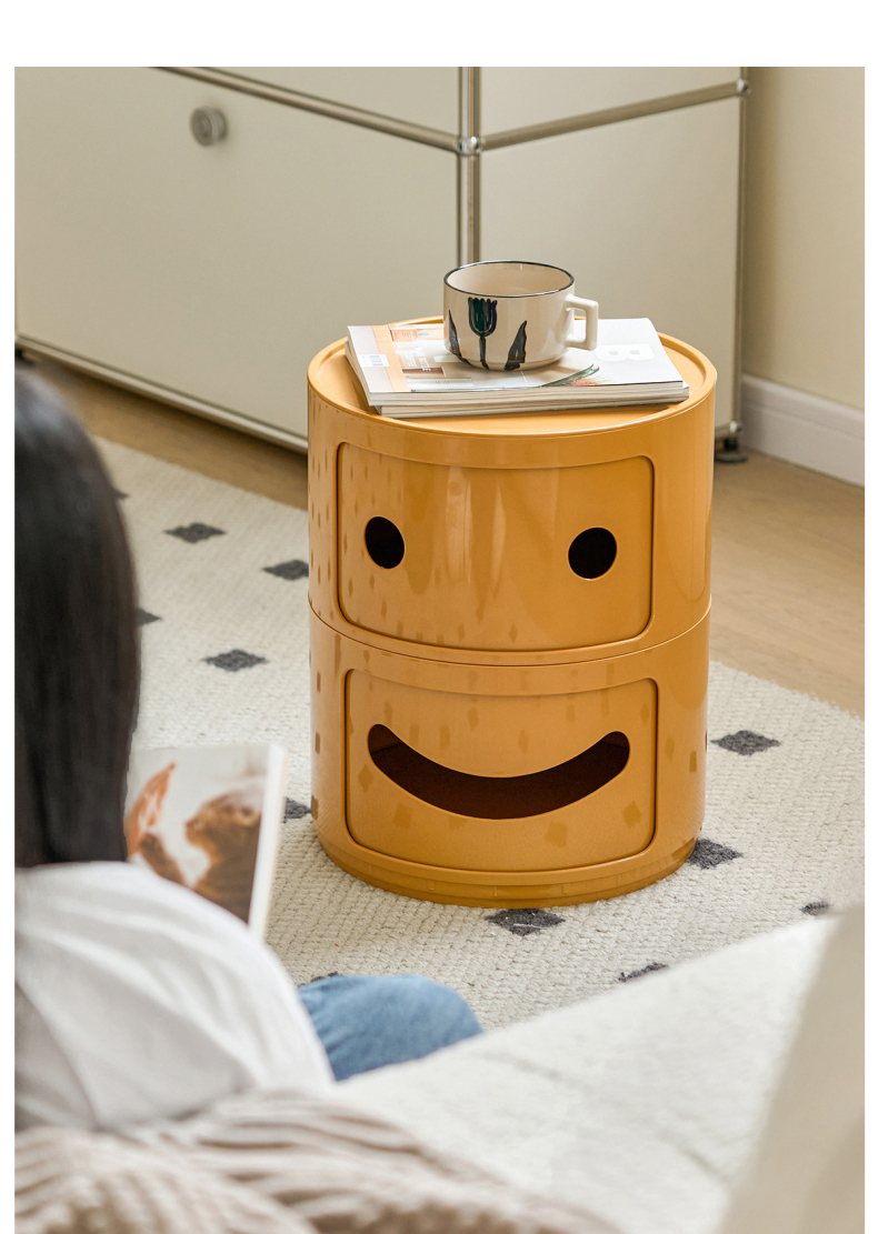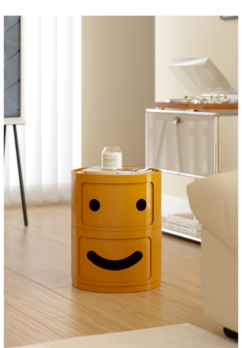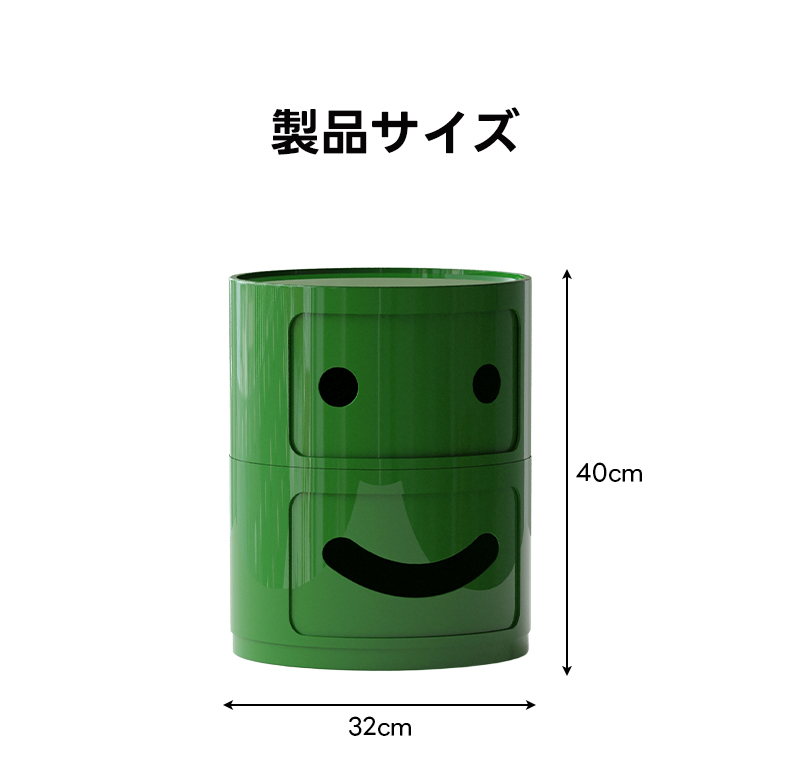 - 【ポップで遊び心あふれるデザイン】スマイルキャビネットは、円形のフォルムと笑顔のモチーフが特徴で、お部屋を明るく楽しい雰囲気に演出します。デザイン性と実用性を兼ね備えた収納家具です。