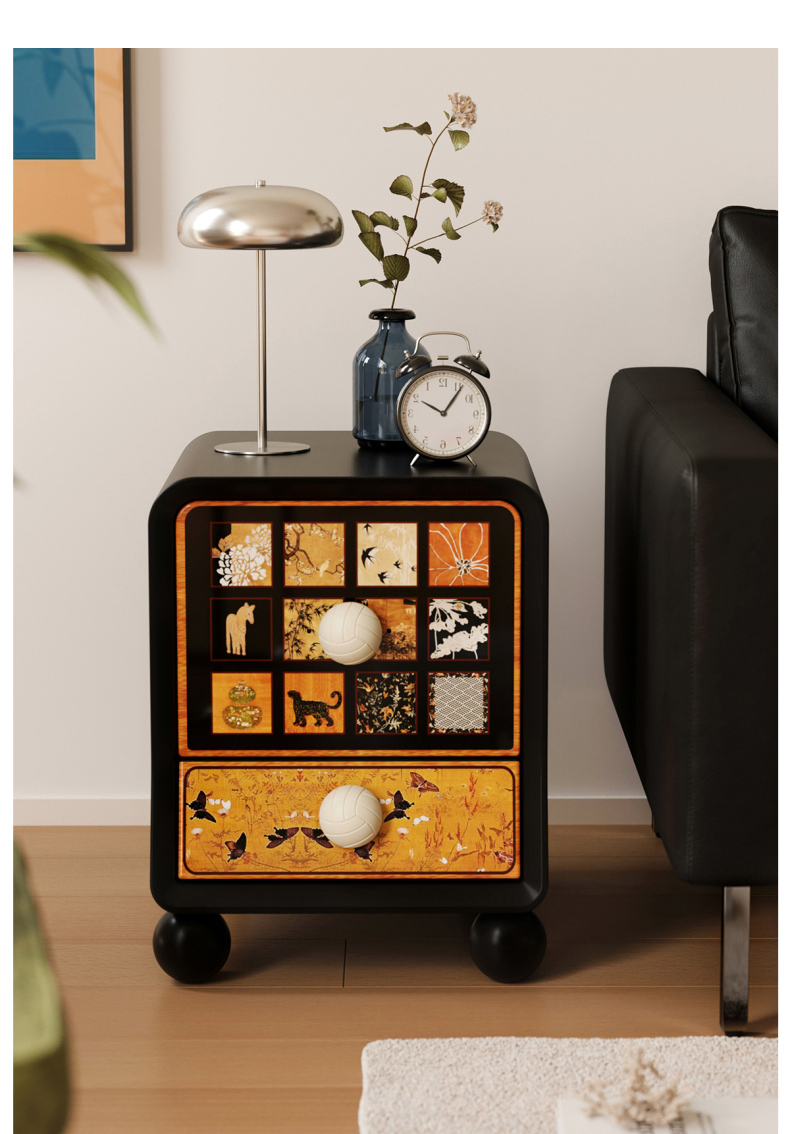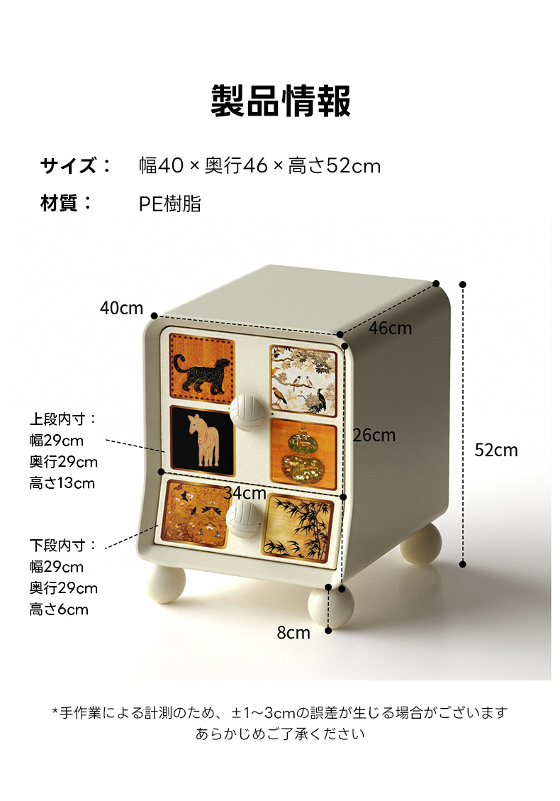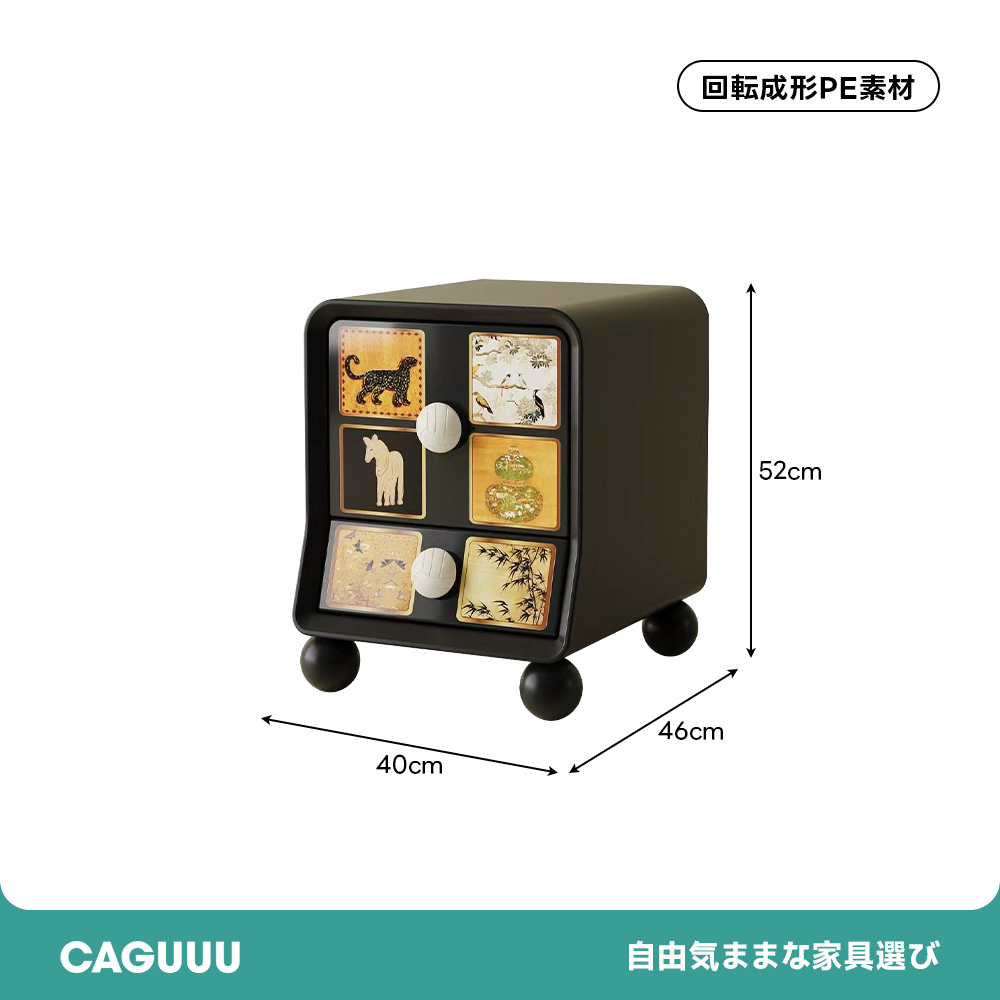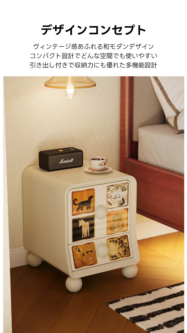 - 【和モダンデザインと機能性の融合】:このキャビネットは、伝統的な和の美しさと現代的なモダンスタイルを融合したデザインが特徴です。引き出しの前面に施された和柄が、インテリアにアクセントを加え、どんなお部屋にもぴったりフィットします。