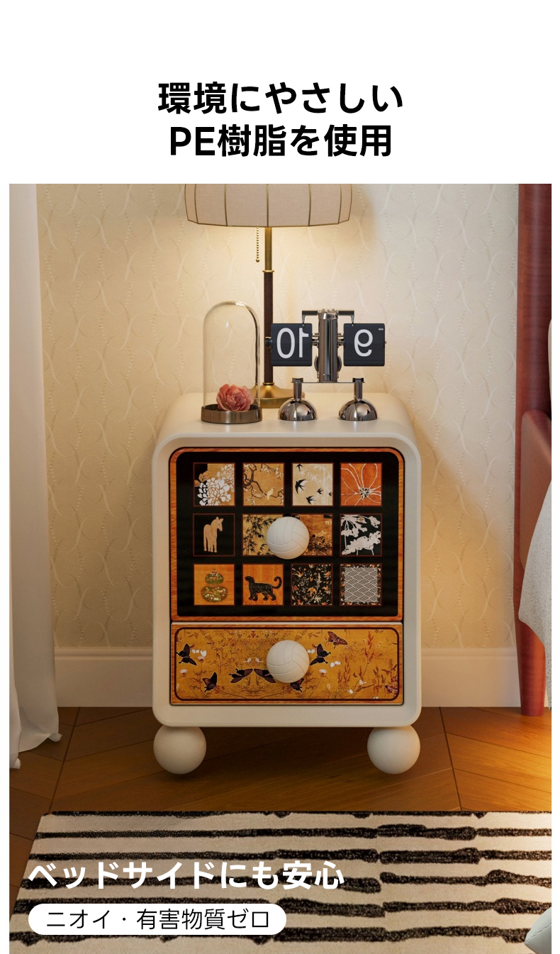- 【環境に優しい素材】:耐久性が高く、軽量なPE樹脂を使用しており、移動も簡単。匂いや有害物質がゼロなので、安心して寝室やベッドルームでお使いいただけます。