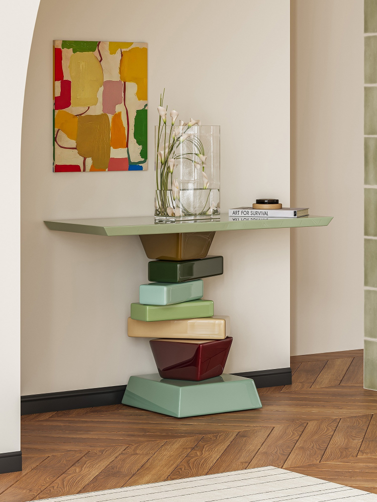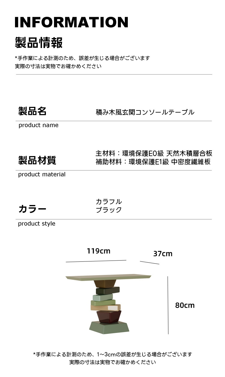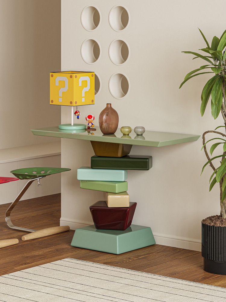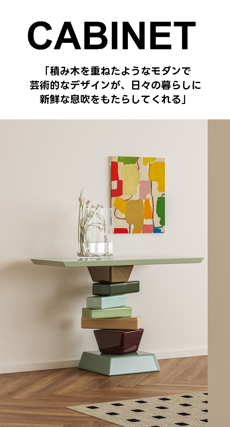 • 【ユニークな積み木風デザイン】このコンソールテーブルは、積み木を思わせる不規則なデザインが特徴で、アートのような存在感があります。玄関やリビングルームに新鮮な息吹をもたらし、訪れる人々に印象的な第一印象を与えます。