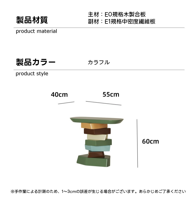 - 【ユニークなデザインと多機能性】このカラフルソファサイドテーブルは、鮮やかな色合いと不規則な形状が特徴です。アートのようなデザインで、リビングや寝室、玄関など様々な空間に彩りを加えます。サイドテーブルやナイトテーブルとしても使用可能で、実用性も兼ね備えています。