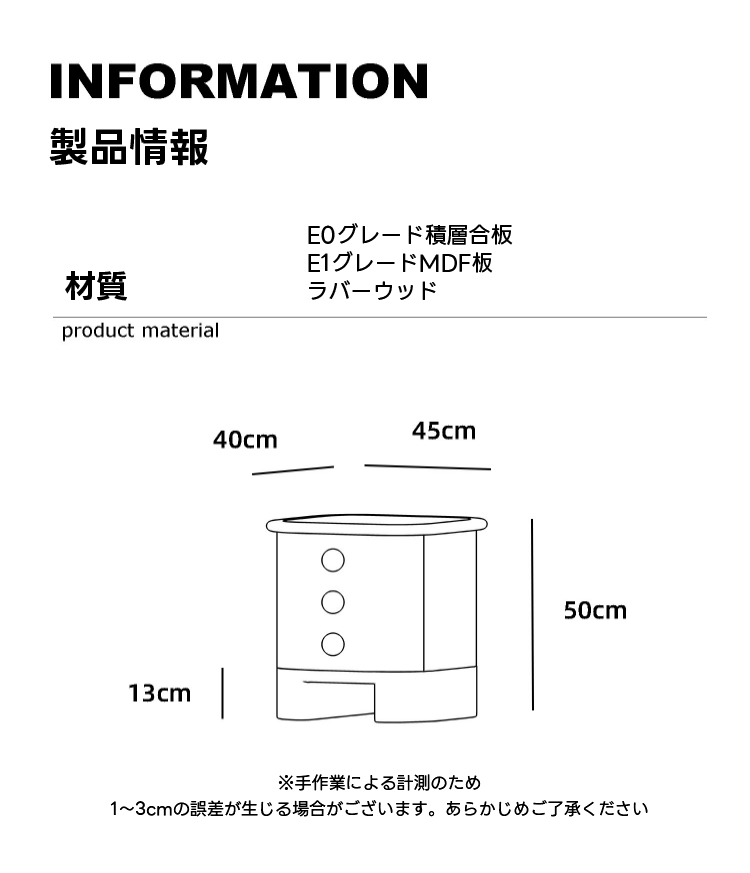 - 【高品質な素材と耐久性】:主材はE0規格木製合板、副材はE1規格中密度繊維板、引き出しボックスにはラバーウッドを使用しており、耐久性に優れています。長期間使用しても安心の品質を提供します。