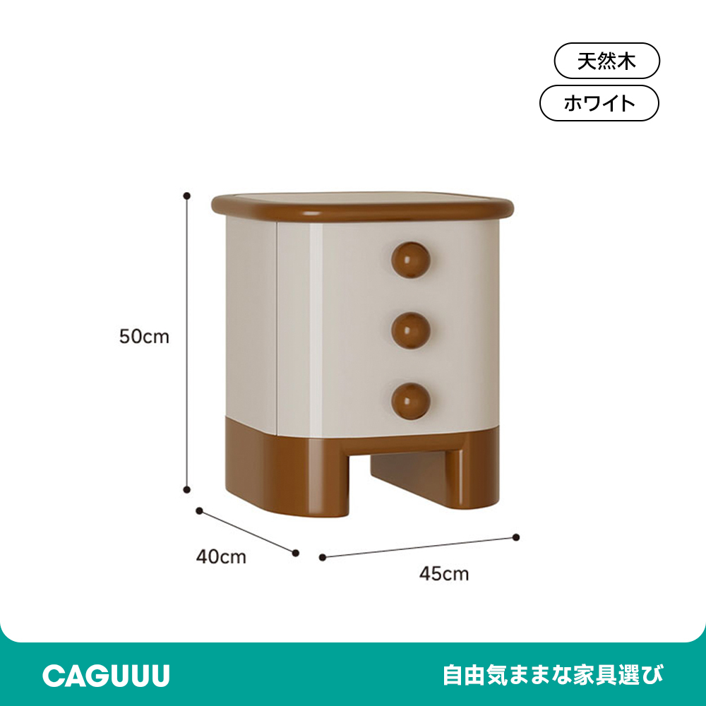 - 【コンパクトで機能的なサイズ】幅40cm、奥行き45cm、高さ50cmのコンパクトサイズで、ベッドサイドにぴったり。両開き扉で小物をすっきり収納でき、片付けが楽しくなります。