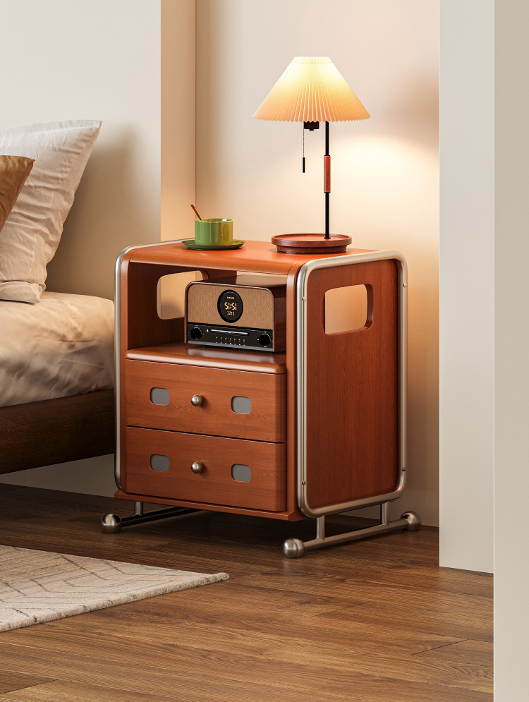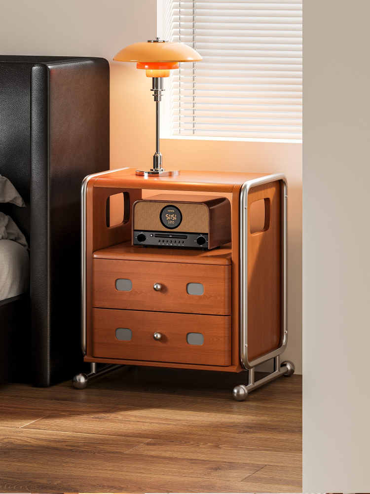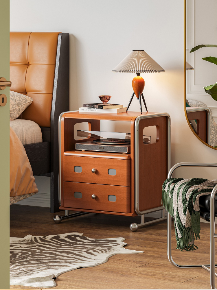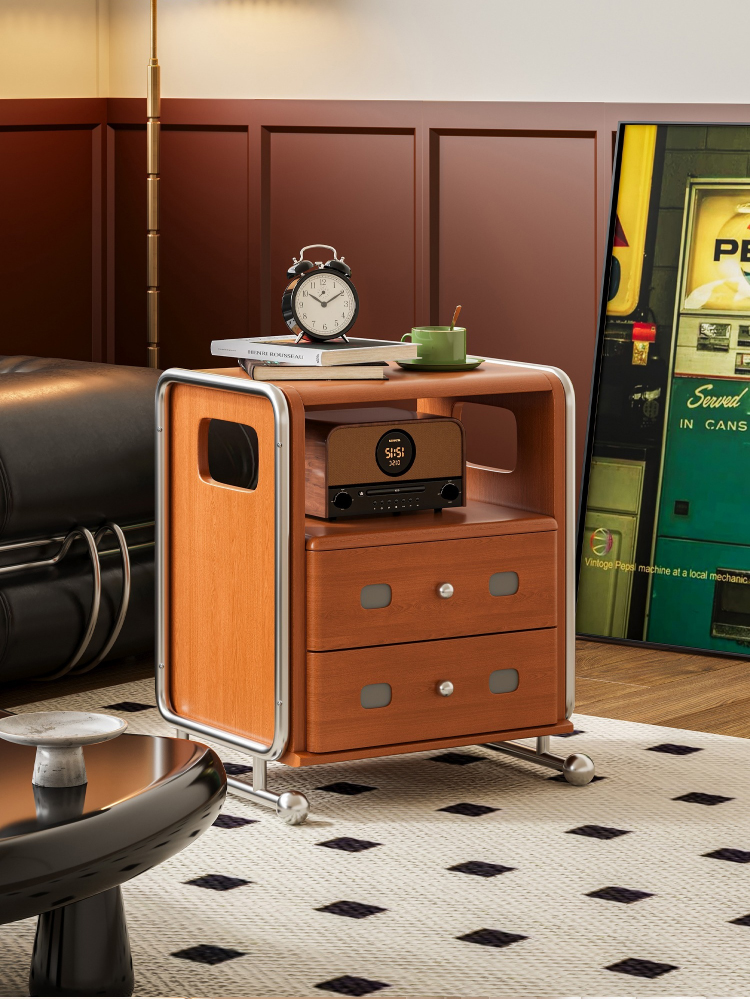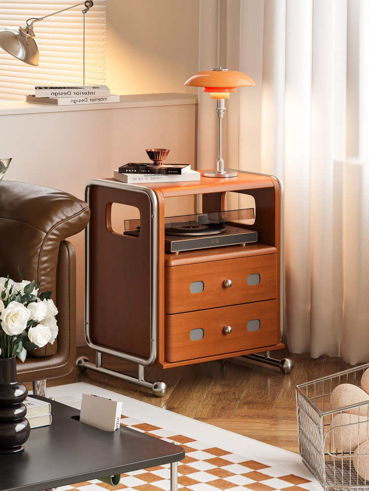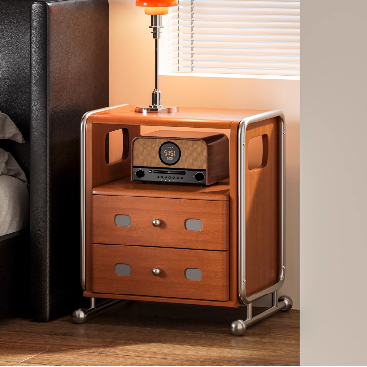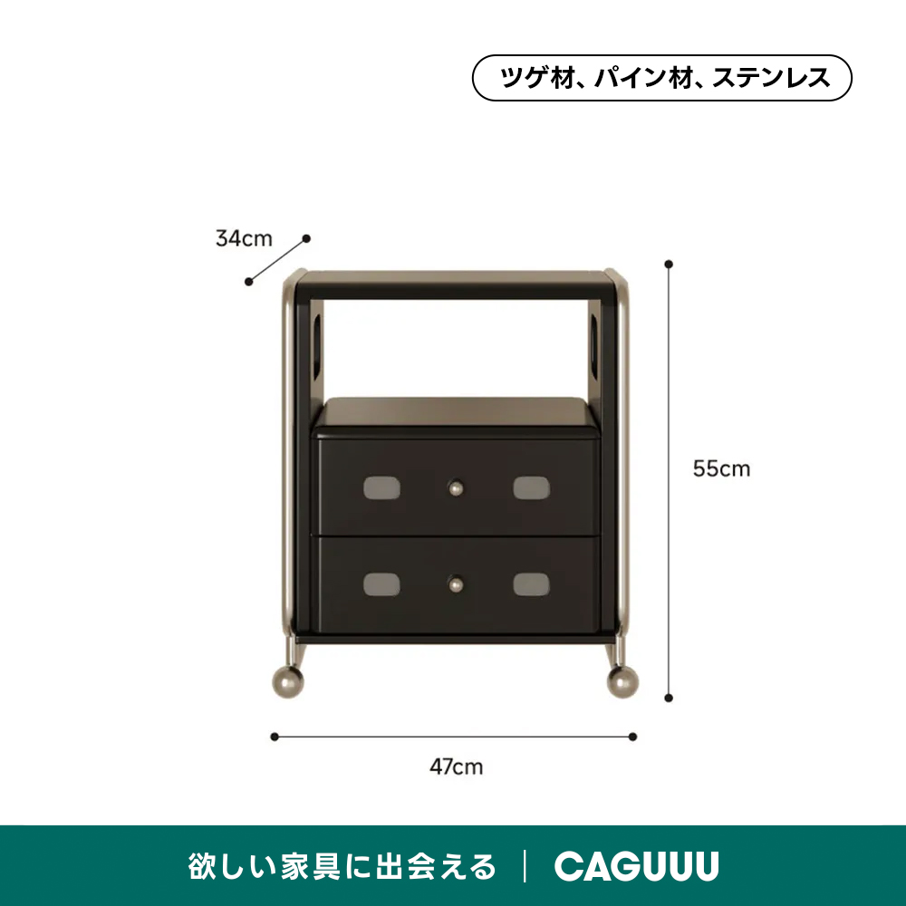 ステンレス×木材ヴィンテージ風ナイトテーブル