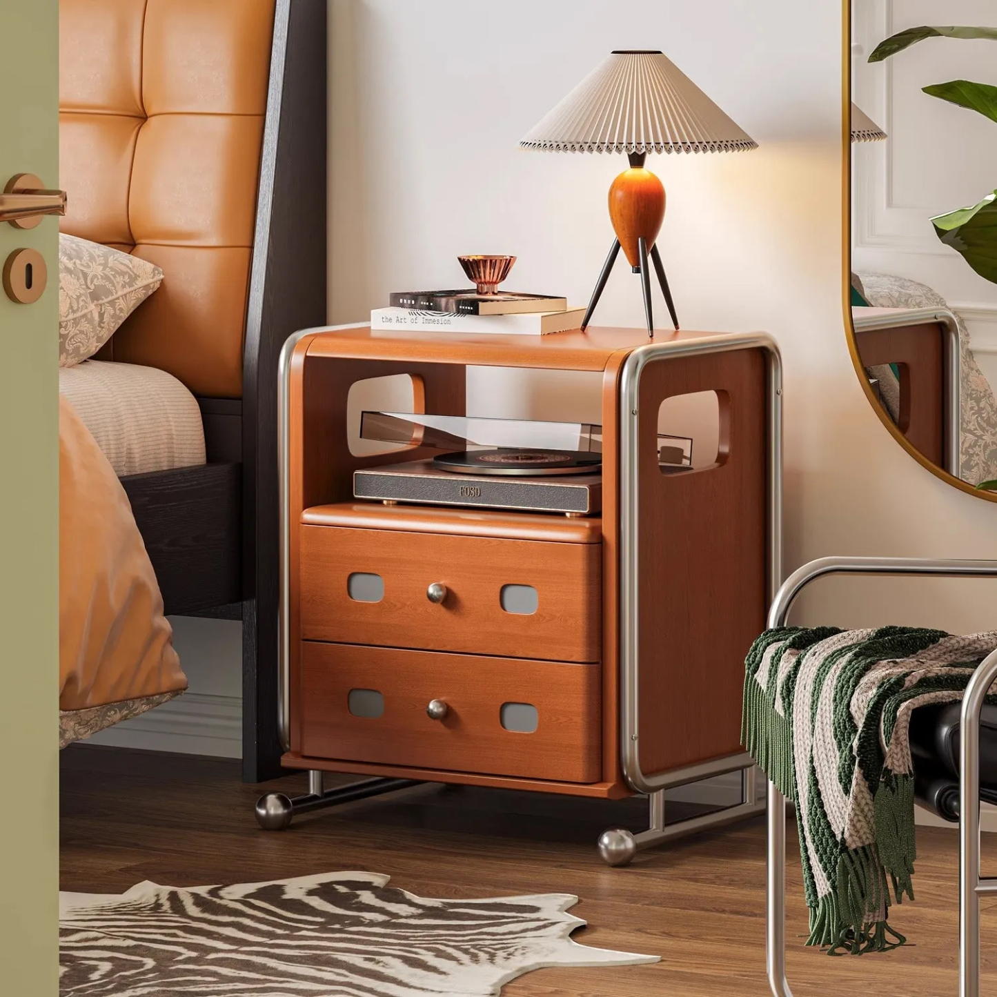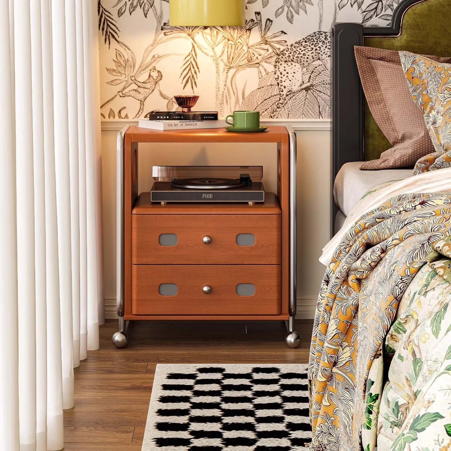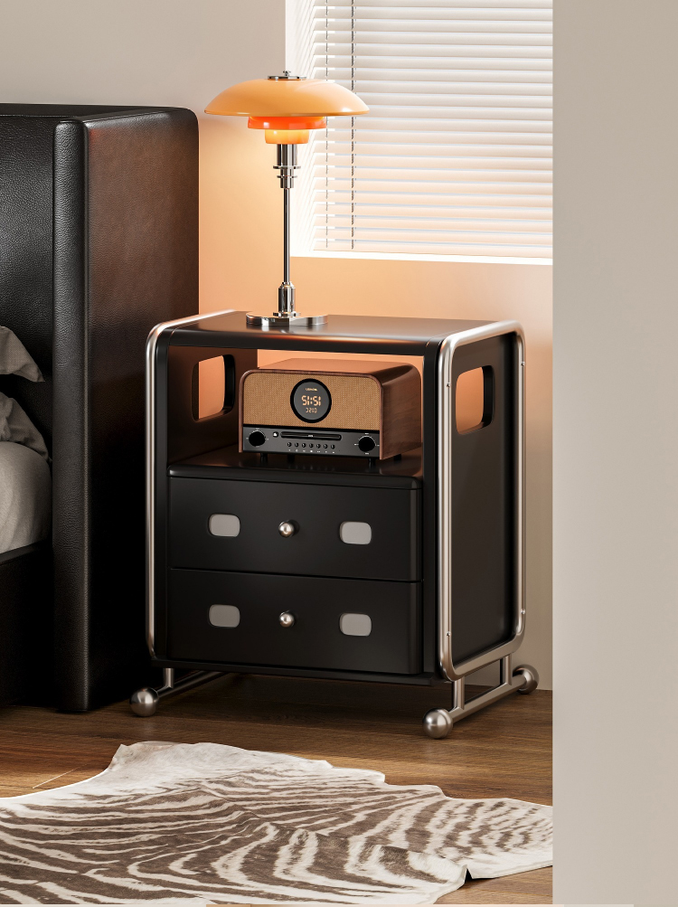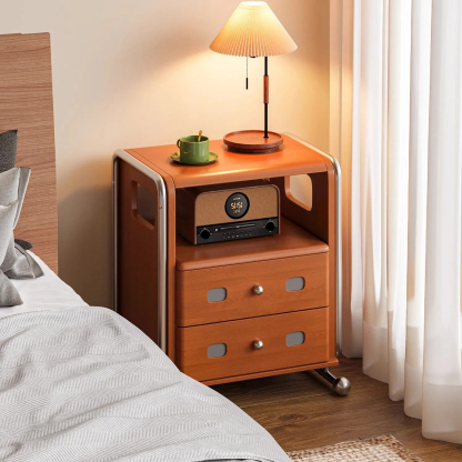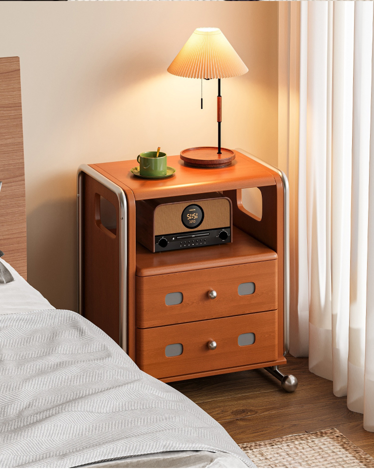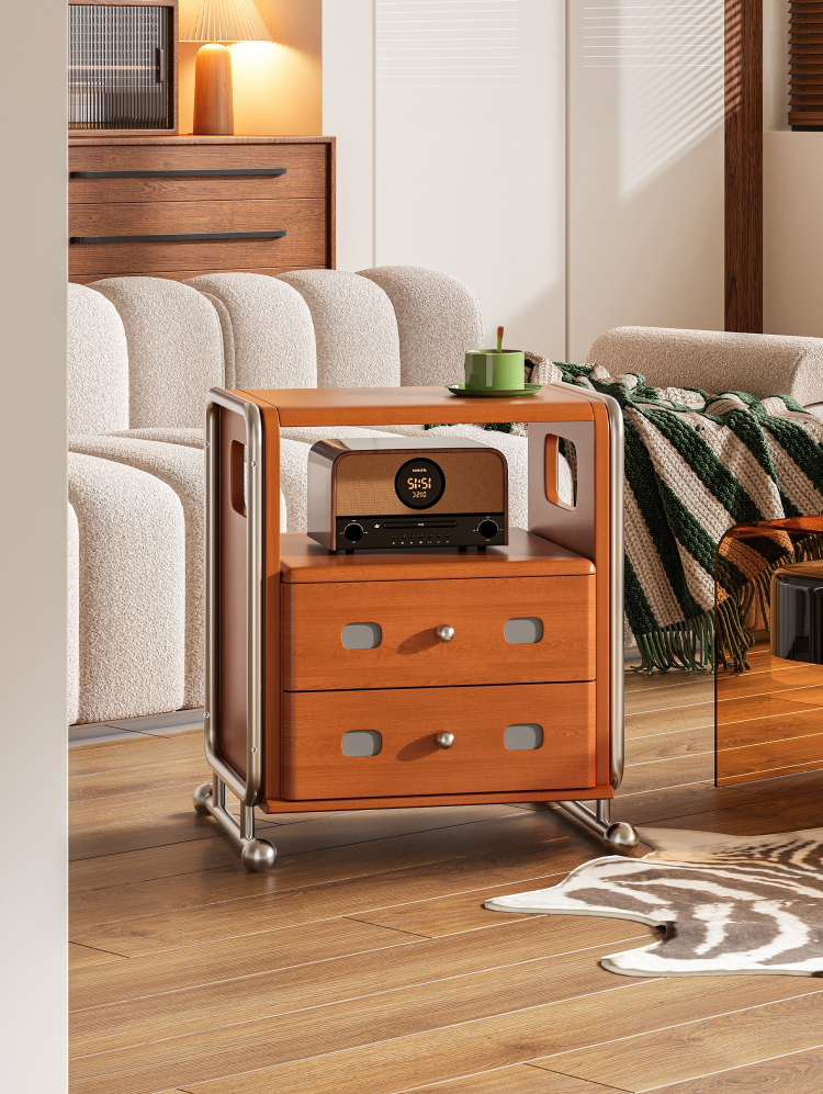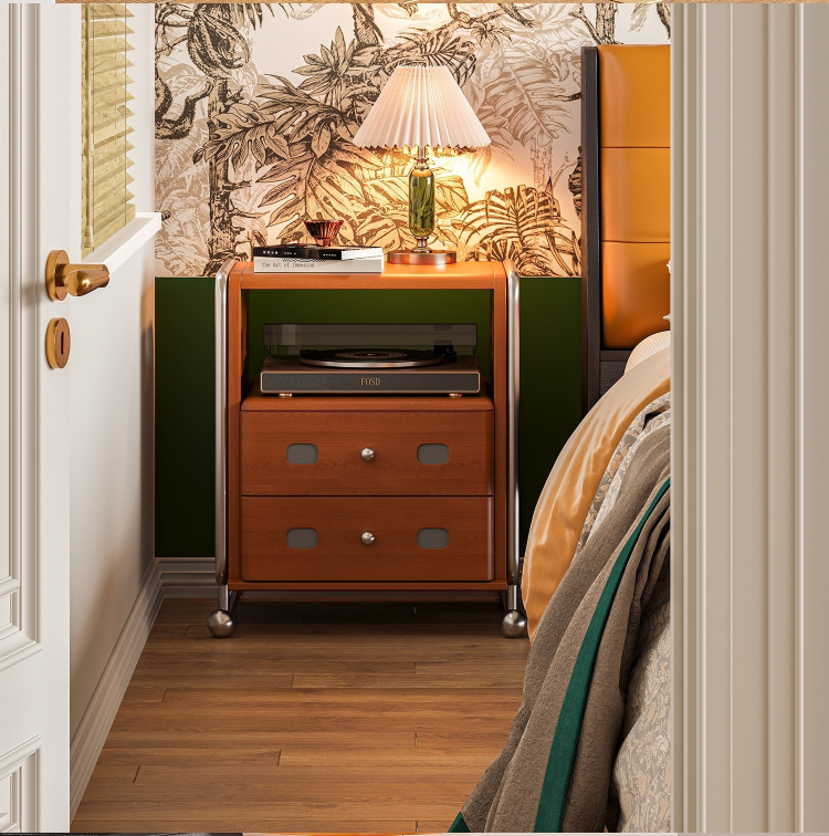 ステンレス×木材ヴィンテージ風ナイトテーブル