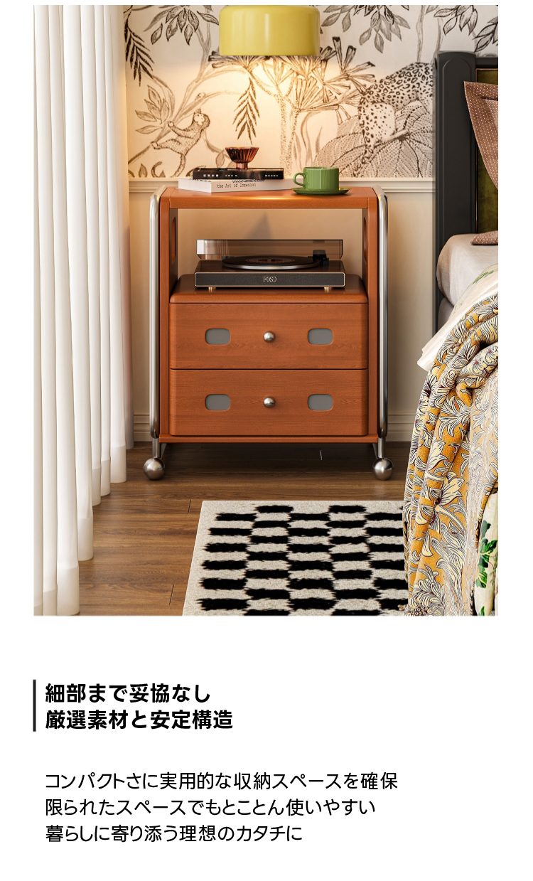 - 【多様な使用シーンに対応】:このテーブルは、ベッドサイドだけでなく、リビングや玄関など多様な場所で活用可能。コンパクトなサイズでありながら、十分な収納スペースを提供し、どんなインテリアにもマッチします。