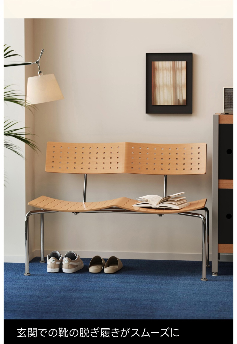 - 【多用途で活躍するアーチラインベンチ】ヴィンテージデザインが特徴で、ダイニングやリビング、書斎、寝室など様々なシーンで活躍します。合成板を使用し、天然木のような温かみのある手触りを実現。どんなインテリアにもマッチするライトブラウンとブラックの色合いが魅力です。