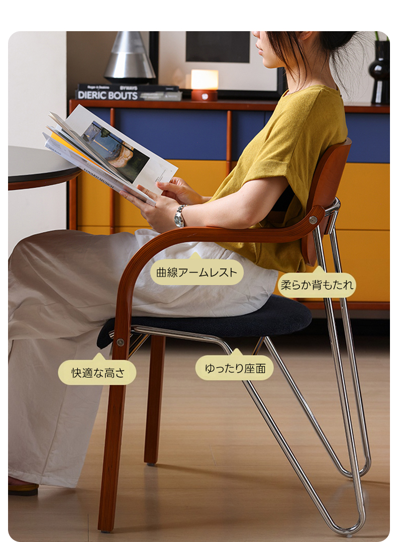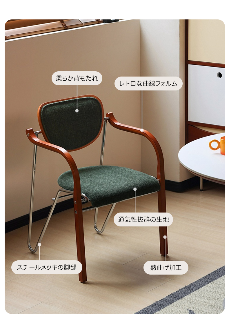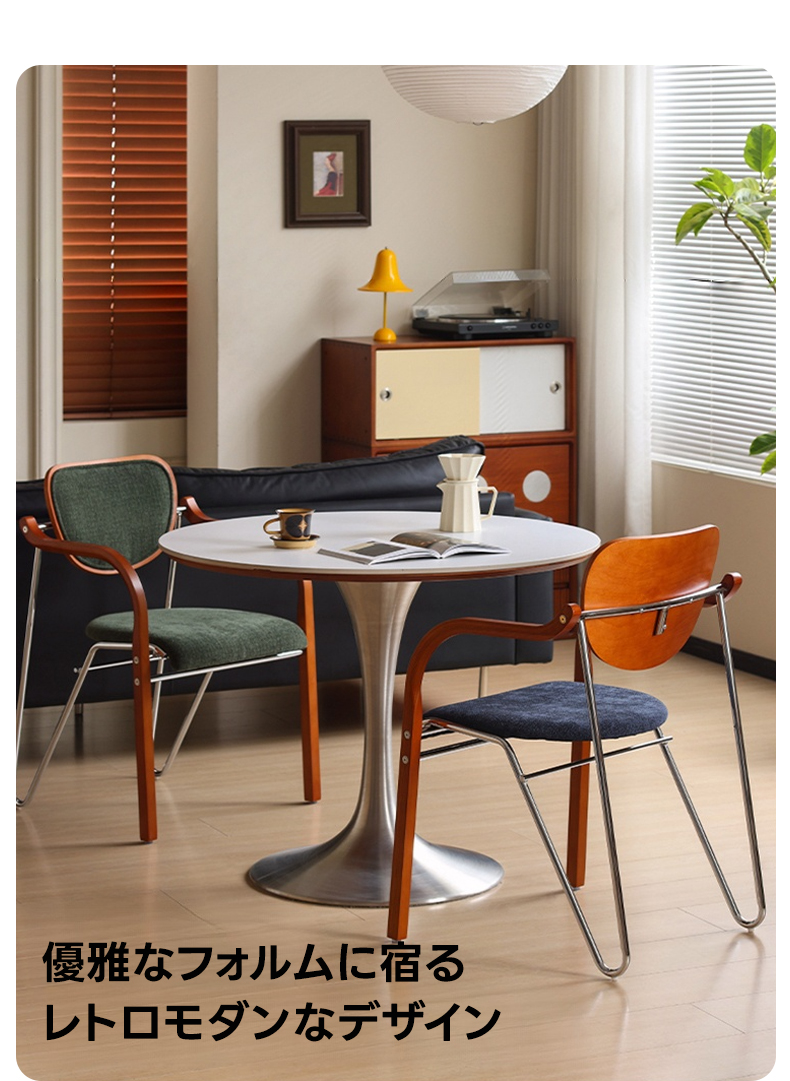 - 【優雅なデザインと機能性】レトロモダンカーブアームチェアは、ヴィンテージ感あふれる優雅な曲線フォルムが特徴で、どんなインテリアにもマッチします。ダイニングやキッチンに最適なデザインで、日常の生活空間を洗練されたスタイルに変えます。