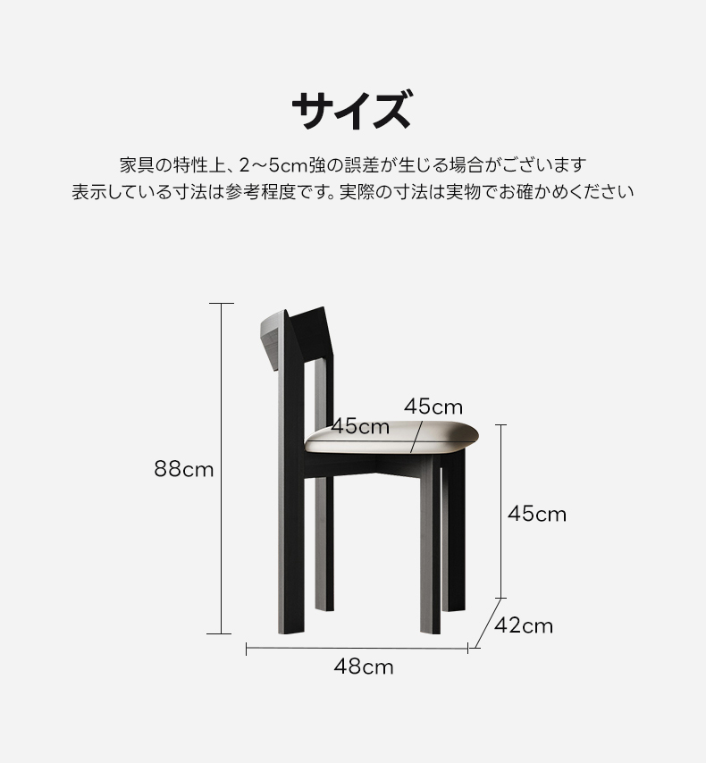- 【人間工学に基づいた快適な座り心地】背もたれは人間工学に基づいて設計されており、長時間座っても疲れにくいです。背中に優しくフィットする曲線設計で、快適なサポートを提供します。座面の高さは45cmで、標準的なダイニングチェアのサイズです。
