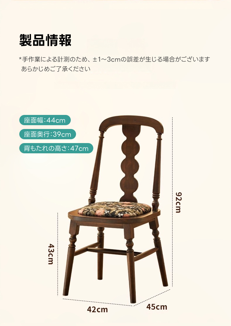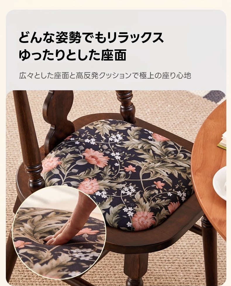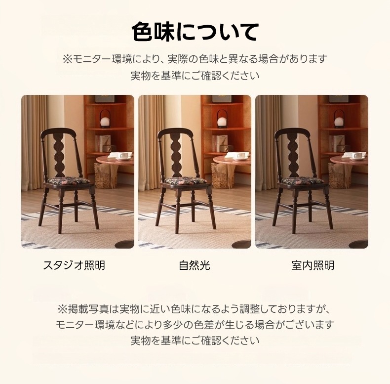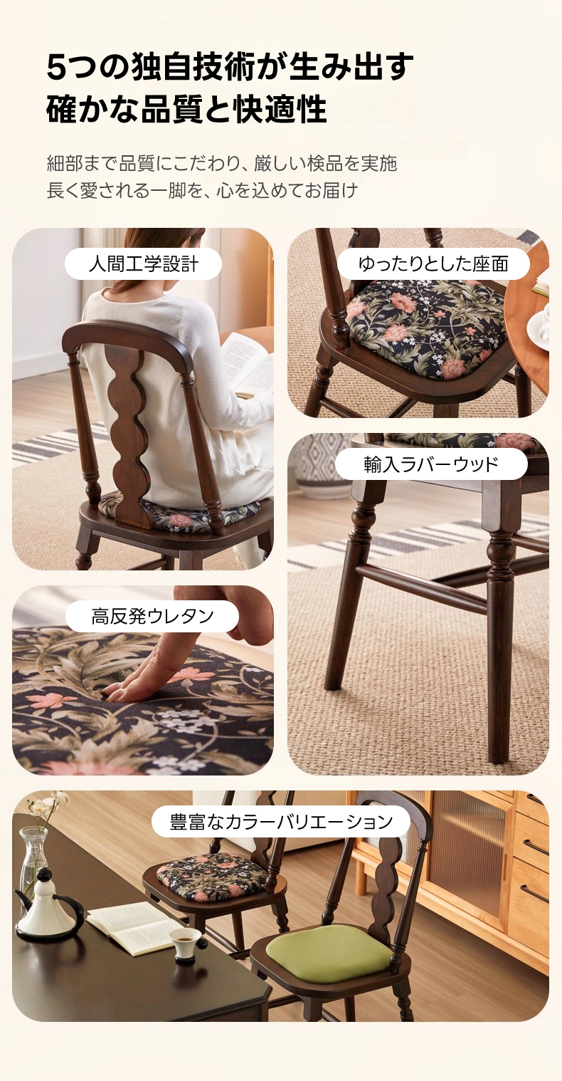 - 【多様なシーンで活躍】:このチェアは、一人暮らしの方からカップル、ファミリーまで幅広くご利用いただけます。ダイニングやリビング、オフィスなど、様々なシーンで活躍し、空間に温かみとロマンをプラスします。