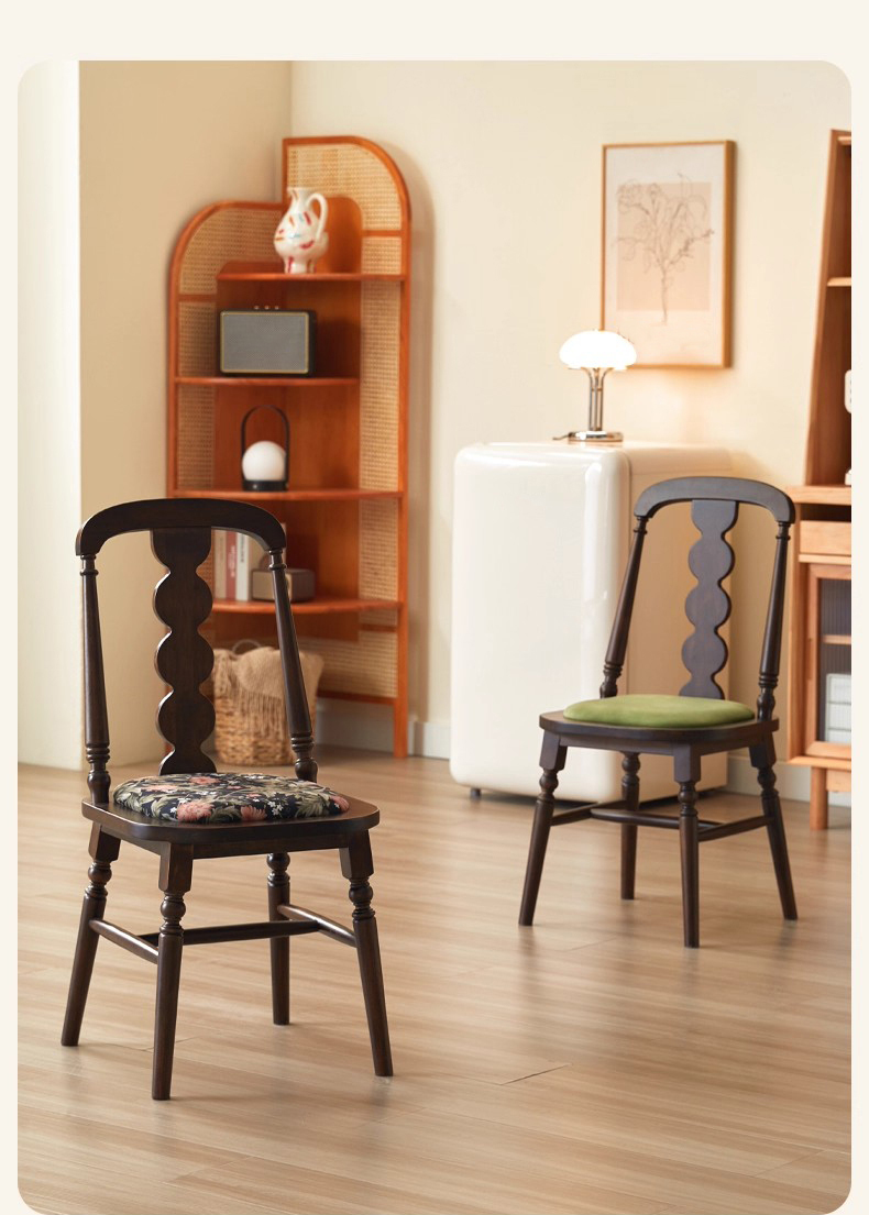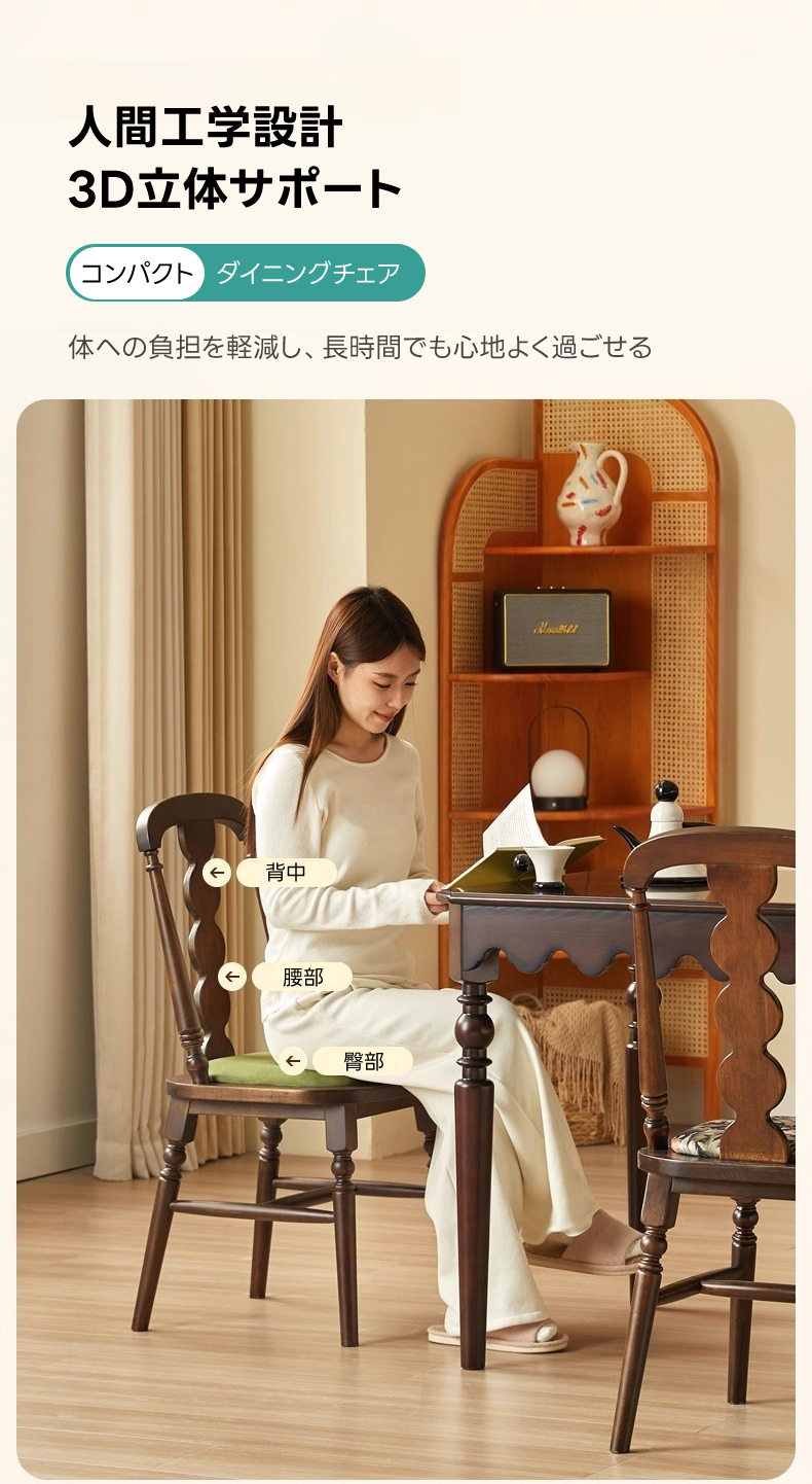 - 【クラシックなデザインと快適性の融合】:レトロエレガンスチェアは、クラシックなデザインと人間工学に基づいた快適性を兼ね備えたダイニングチェアです。背中や腰をしっかりサポートする設計で、長時間の使用でも快適な座り心地を提供します。