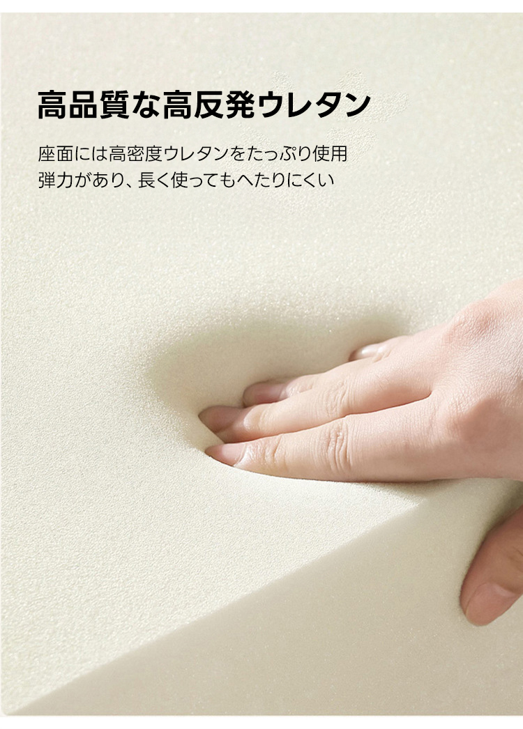 - 【快適な座り心地】:高反発ウレタンを使用したクッションは、長時間座ってもへたりにくく、快適な座り心地を提供します。どんなに長時間座っても疲れにくい設計です。