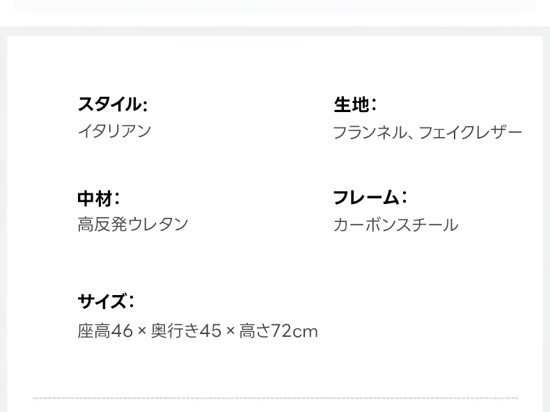 - 【多様な使用シーン】長方形のシルエットがスタイリッシュで、レストランやサロンなどの商業空間にも最適です。座高46cm、奥行き45cm、高さ72cmとコンパクトで、一人暮らしの方やカップル、ファミリー向けに最適です。