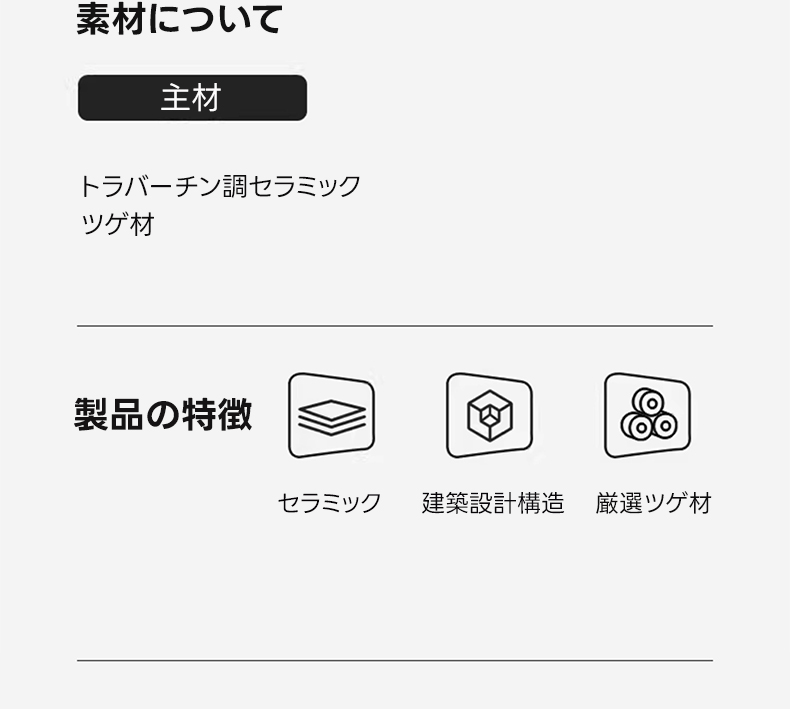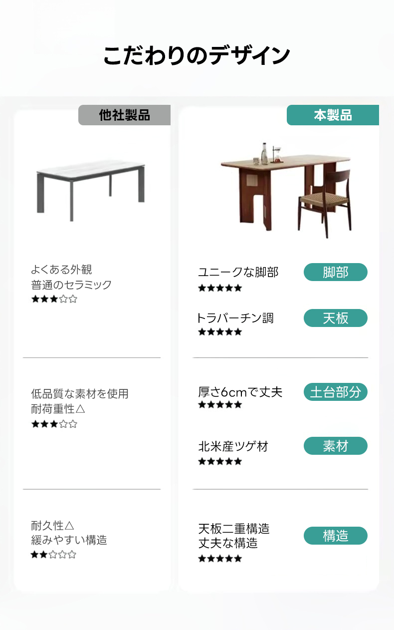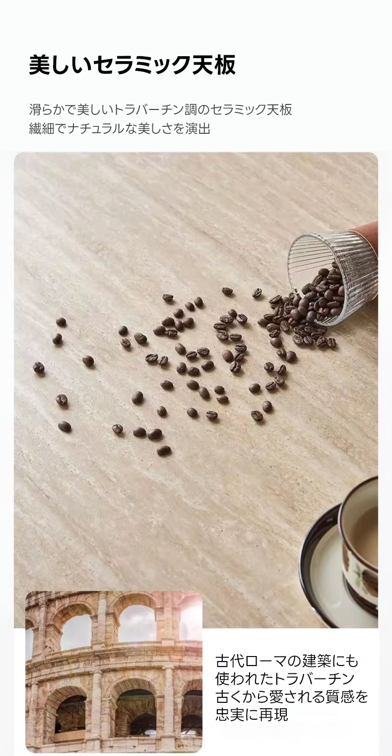 - 【ヴィンテージと現代の融合】モードラインダイニングテーブルは、ヴィンテージ感と現代的なデザインが融合した洗練された家具です。セラミック天板はトラバーチン調で、美しい自然な風合いを持ち、耐摩耗性と耐熱性に優れています。これにより、日常的な使用にも安心してお使いいただけます。