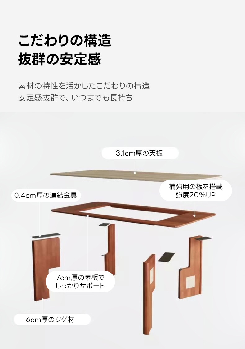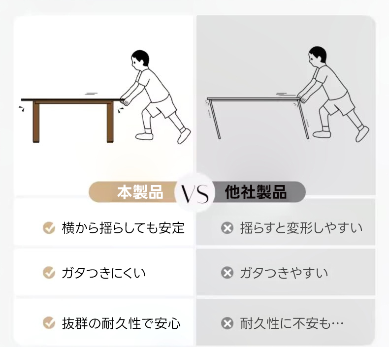 - 【安全性と安定性】丸みのあるエッジ部分は安全で、保護パッド付きで床のキズを防ぎます。さらに、三角構造の脚部は耐荷重と安定性が抜群で、揺れにくい設計です。安心して長期間お使いいただけます。