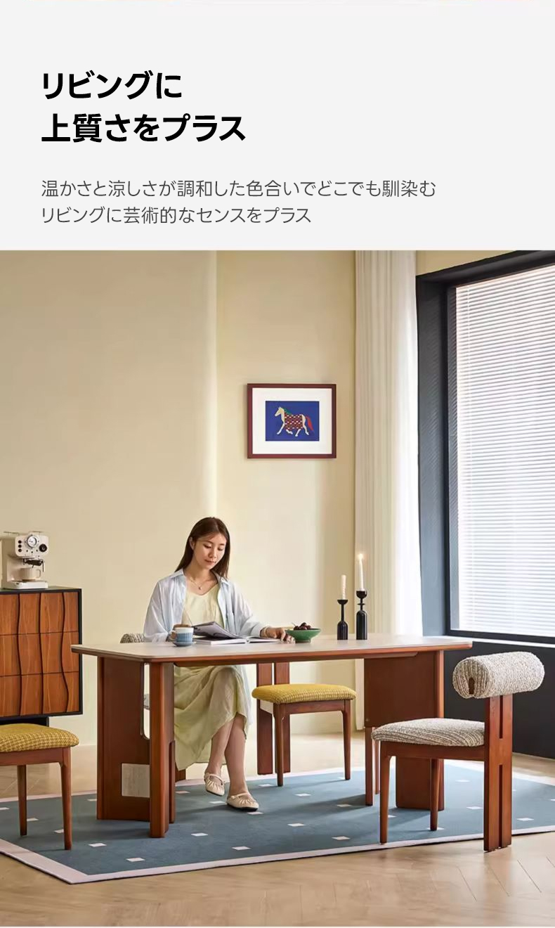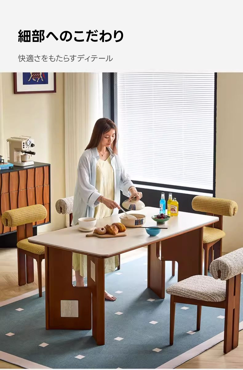 - 【多様なシーンに対応】このダイニングテーブルは、カップルやファミリー向けに最適です。広々とした天板は食事や作業を快適に行うことができ、大人数での使用にも適しています。ベージュの色合いがどんなインテリアにもマッチし、自然な美しさを演出します。