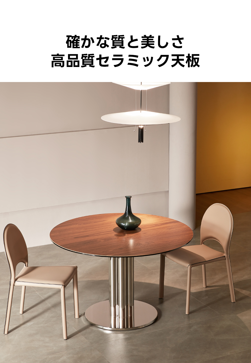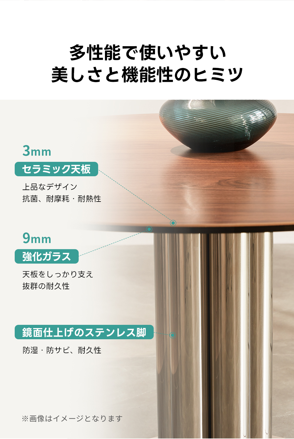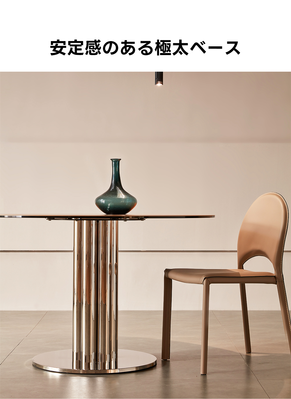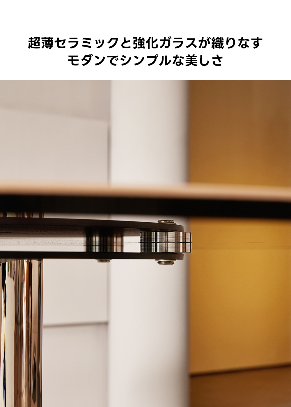 - 【高品質な素材とスタイリッシュなデザイン】:モダンラウンドテーブルはセラミックと強化ガラスの天板を採用し、耐久性と美しさを兼ね備えています。ステンレスの脚部は鏡面仕上げで、どんなインテリアにもモダンな印象を与えます。