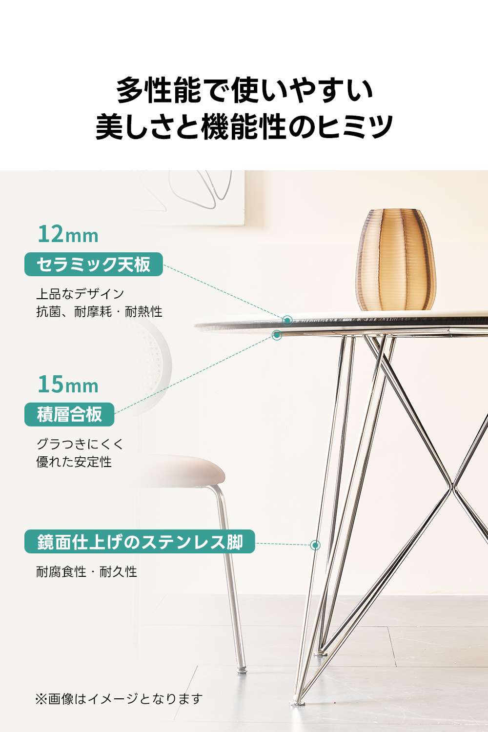 - 【ラグジュアリーな雰囲気を演出】トラバーチン調セラミック天板を採用したダイニングテーブルは、厚さ12mmの天板が耐摩耗性と耐熱性に優れ、抗菌効果も備えています。日常の使用でも安心してお使いいただけます。