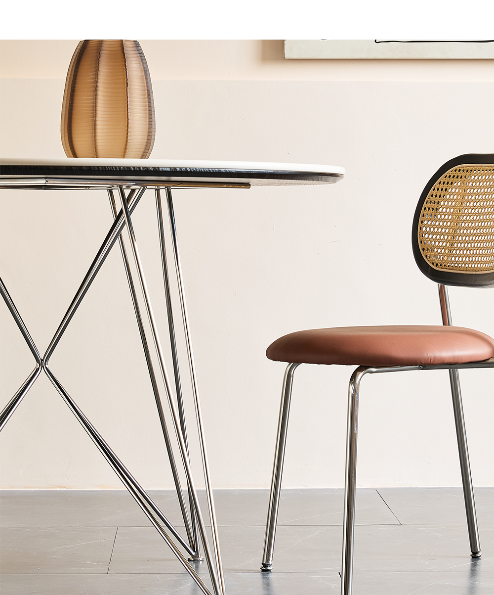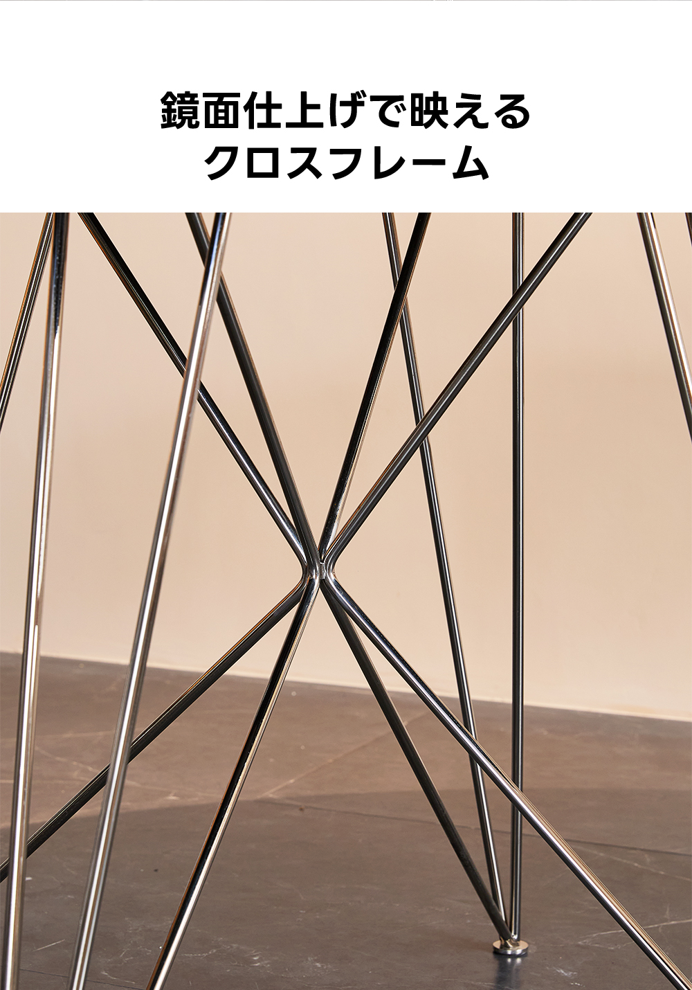 - 【高品質な素材とデザイン】ステンレス製の脚部は鏡面仕上げが施され、耐腐食性と耐久性を兼ね備えています。クロスフレームのモダンでスタイリッシュなデザインが、どんな部屋にもマッチします。