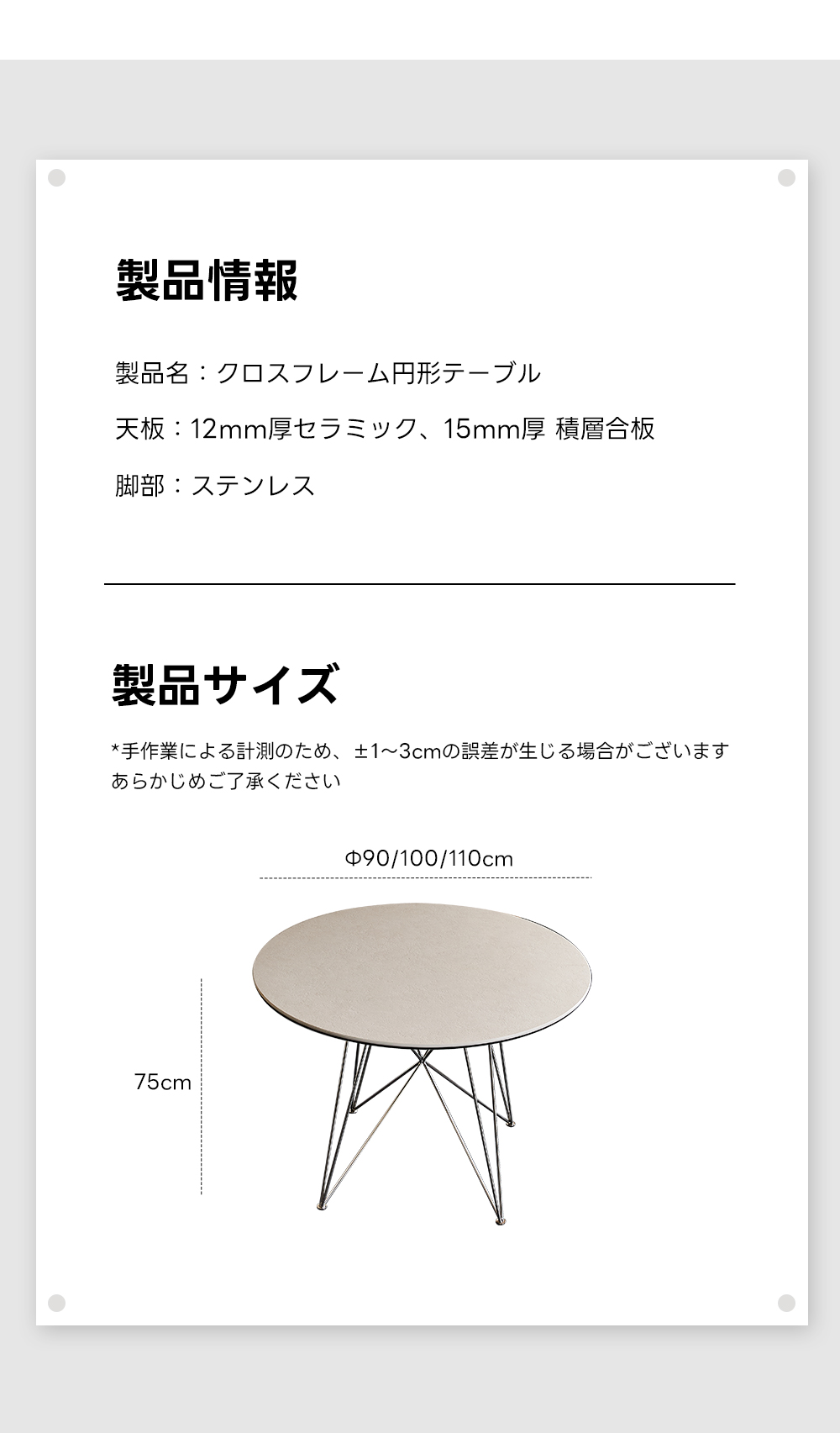 - 【カップルやファミリーに最適】円形デザインはスペースを有効に活用でき、カップルやファミリー向けに最適です。直径90cm、100cm、110cmから選べるサイズ展開で、どんなインテリアにも調和します。