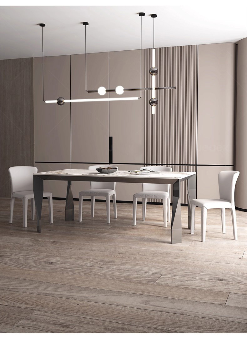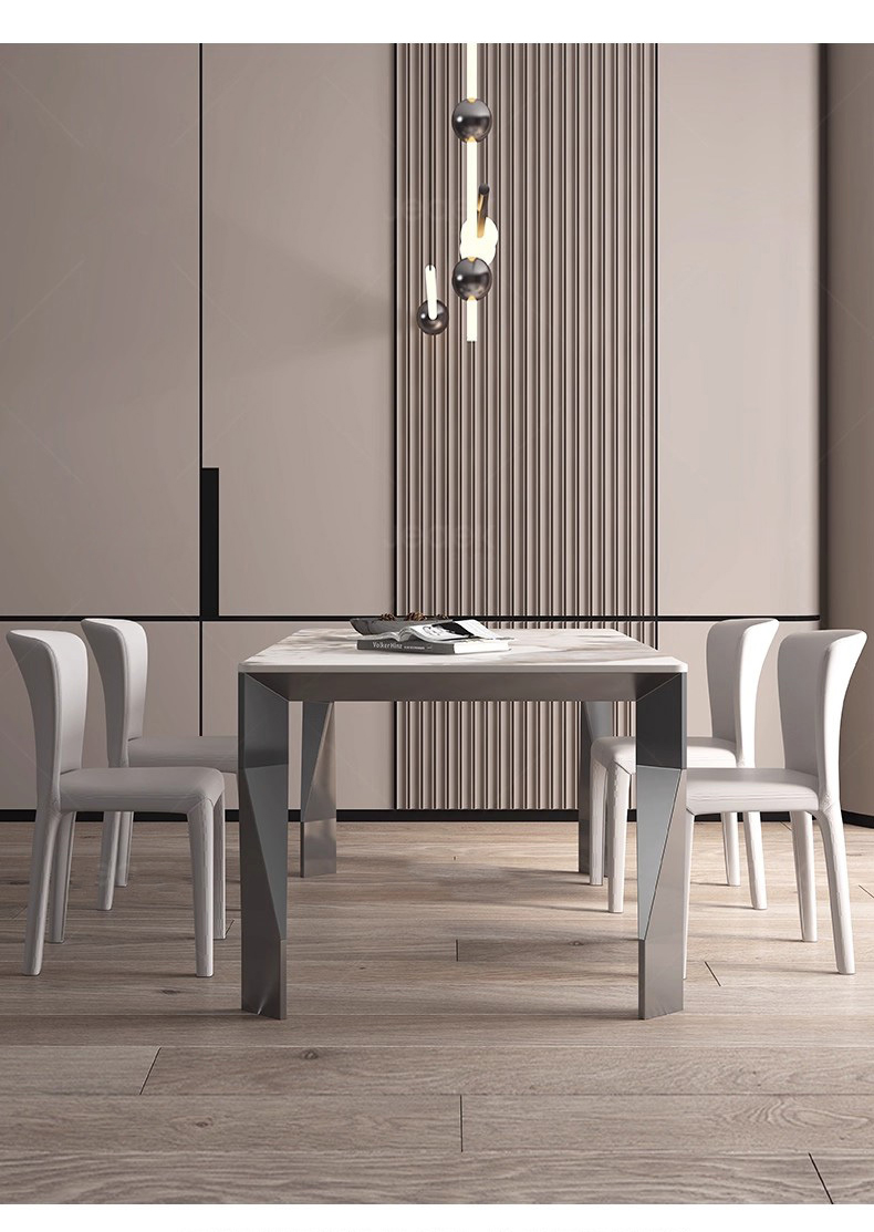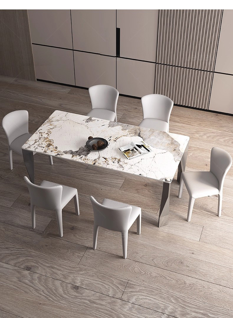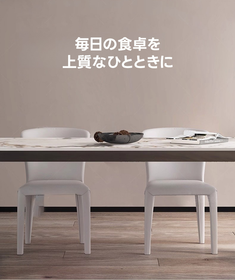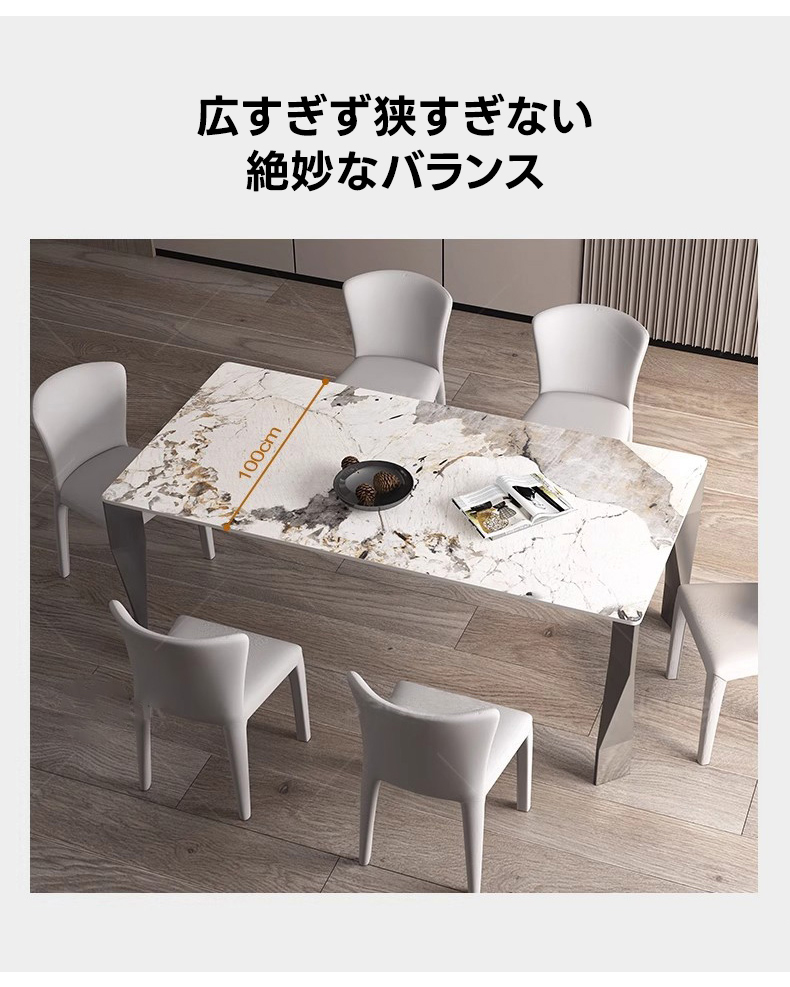 - 【高品質な素材とデザイン】:セラミック天板は自然な風合いとマーブル模様が特徴で、食卓に高級感を演出します。ステンレス製の脚が重厚感を与え、アートのような幾何学デザインが魅力的です。
