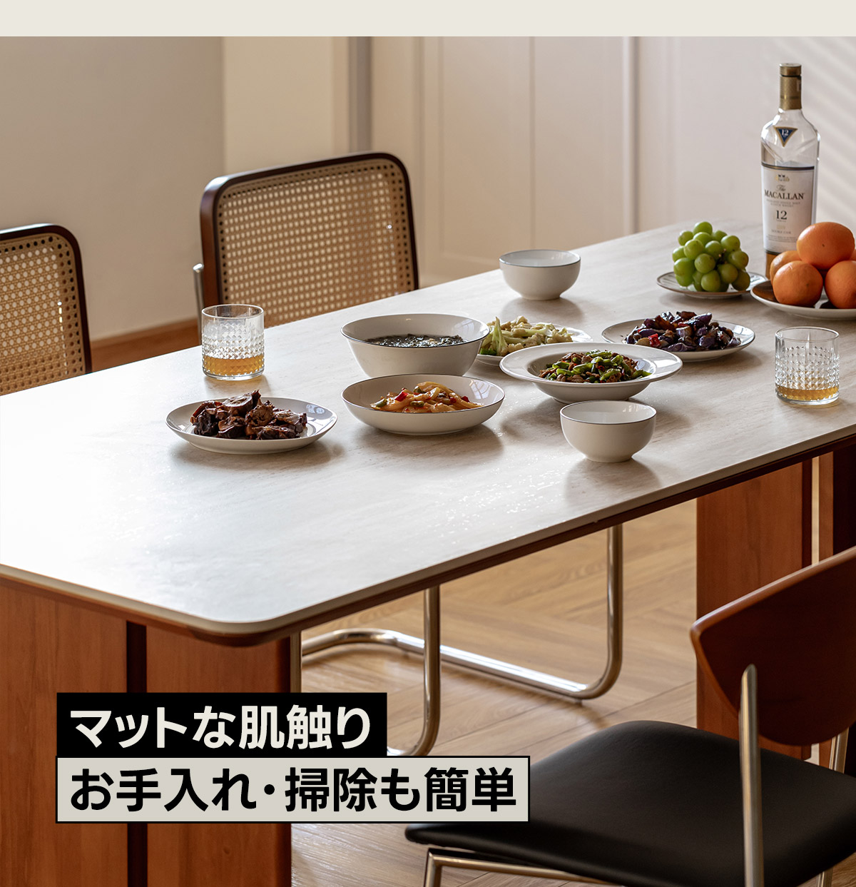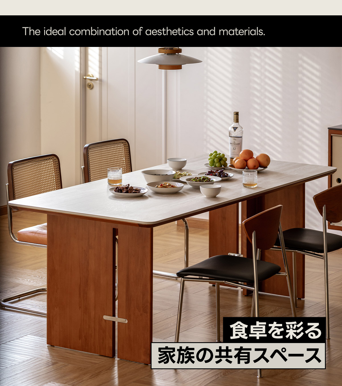 - 【多機能セラミックダイニングテーブル】:ヴィンテージ感とモダンなデザインを融合したこのテーブルは、食事や作業スペースとしても活用できる多機能性を持っています。セラミック天板は耐久性に優れ、長くご使用いただけます。