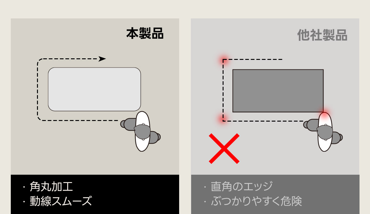 - 【安心の使用体験】:角丸加工が施されており、小さなお子様がいる家庭でも安心してご使用いただけます。滑り止め付きで安定した使用感を実現し、日常生活に安心感をプラスします。