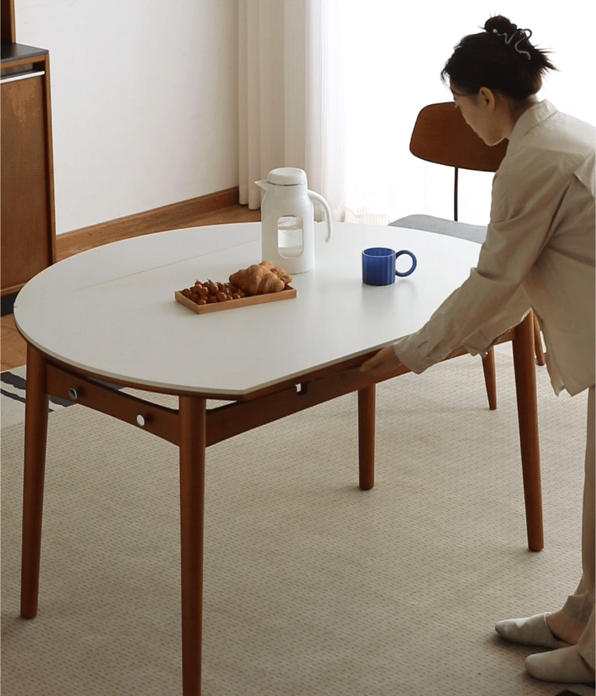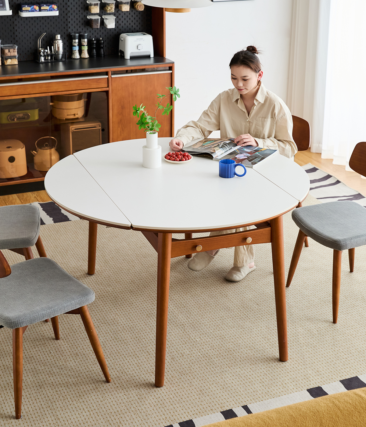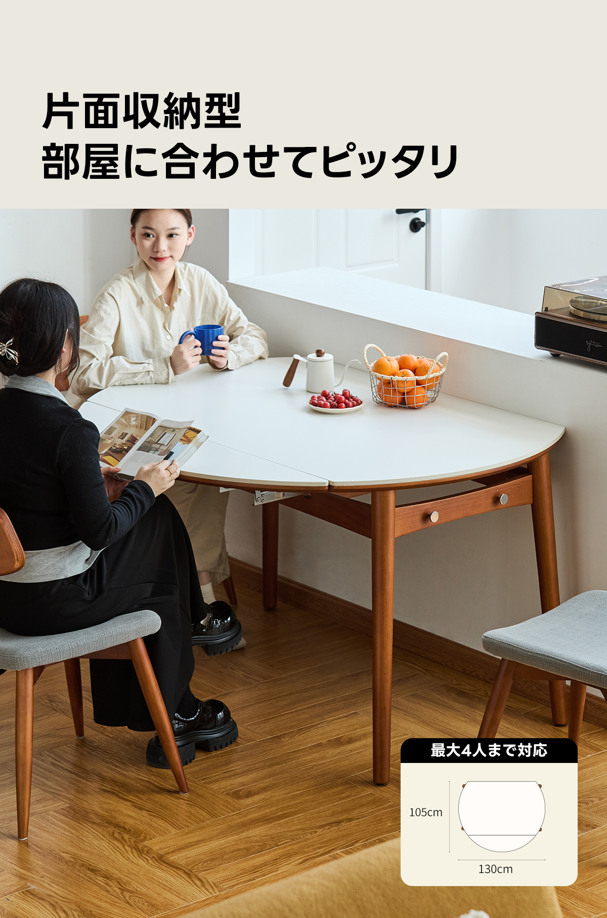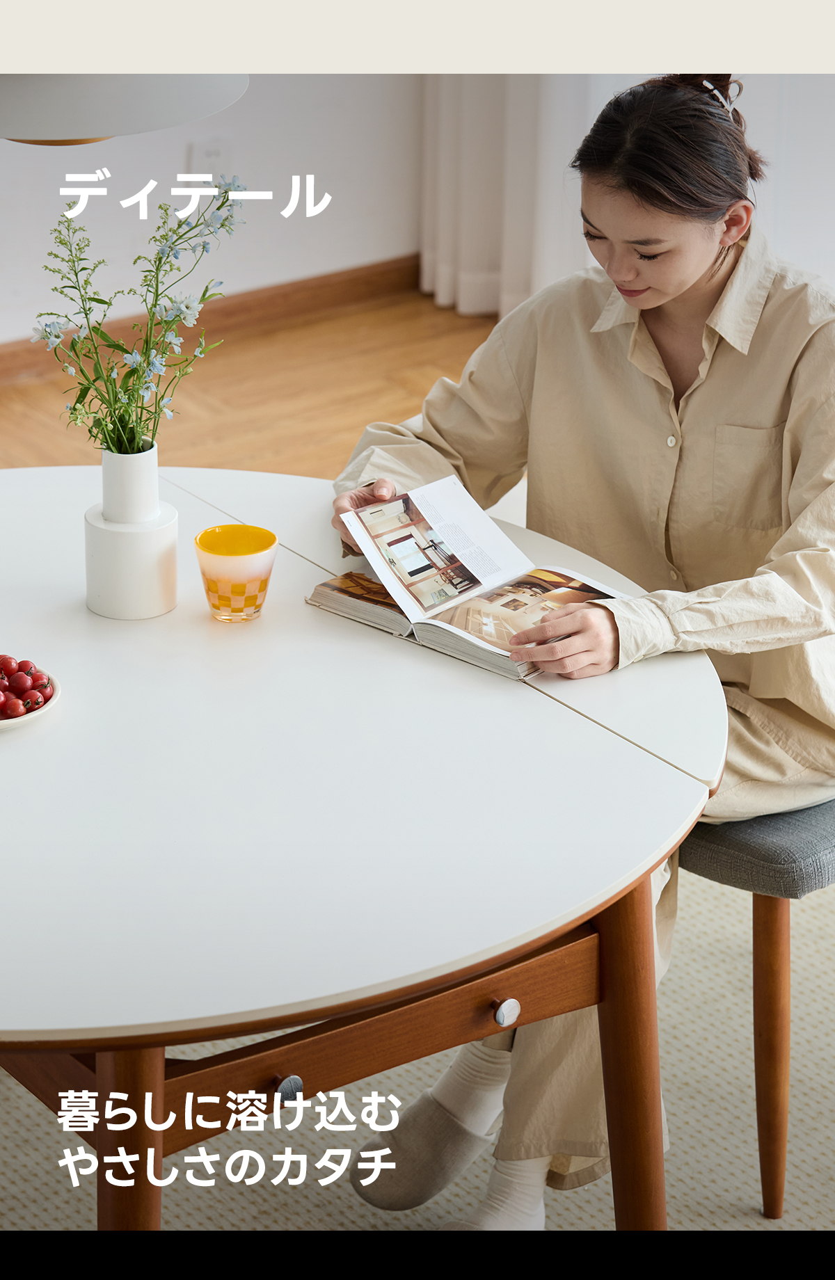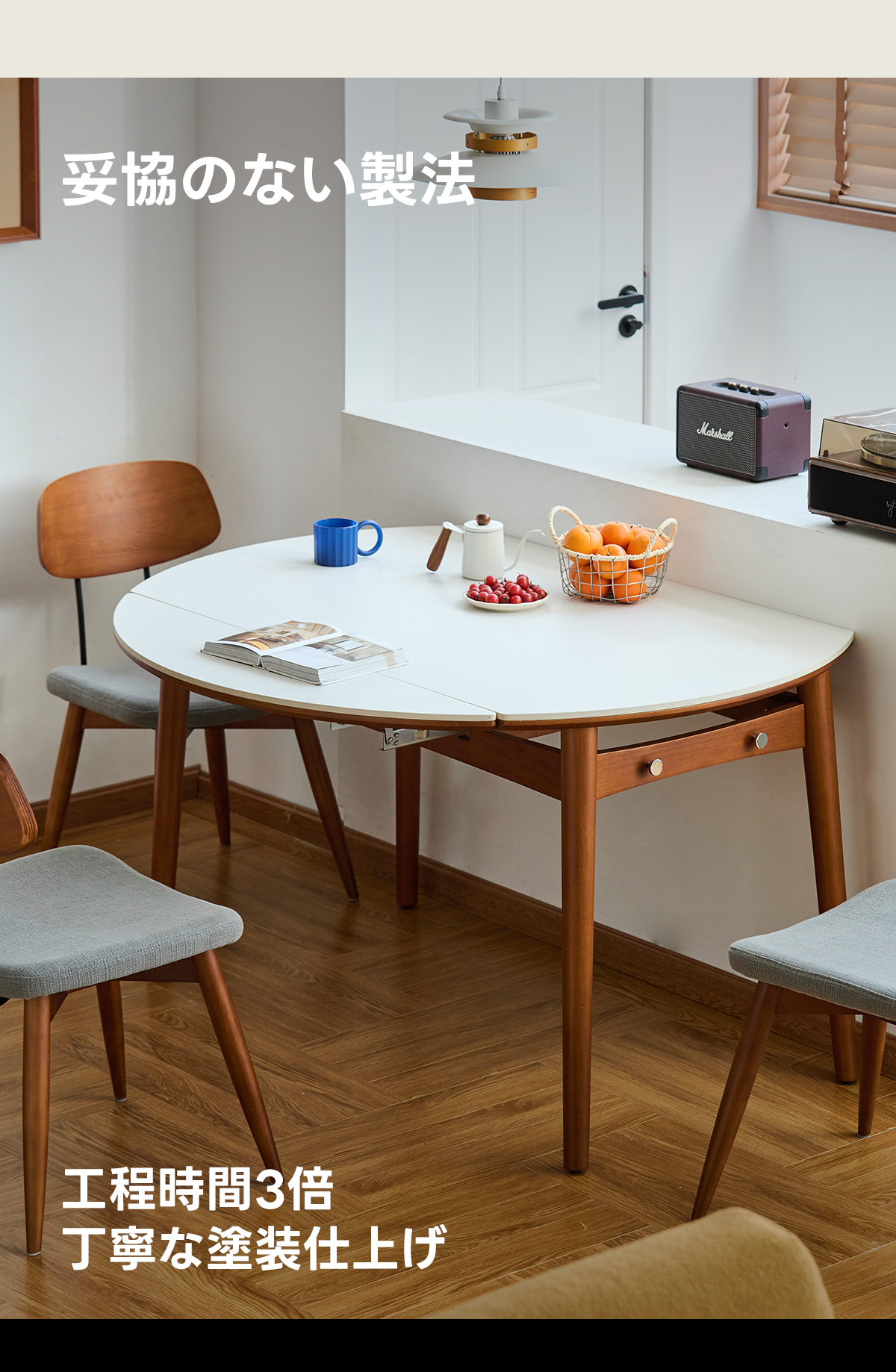 - 【伸長機能で多用途に対応】:このダイニングテーブルは伸長機能を備えており、直径1.3mの円形テーブルは最大8人まで対応可能です。家族や友人との集まりに最適で、必要に応じてサイズを調整できるため、さまざまなシーンで活躍します。