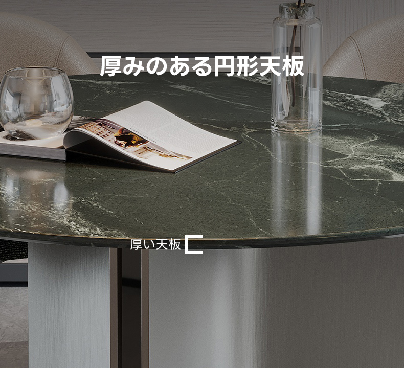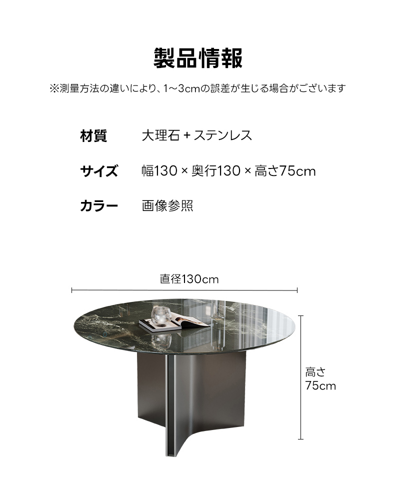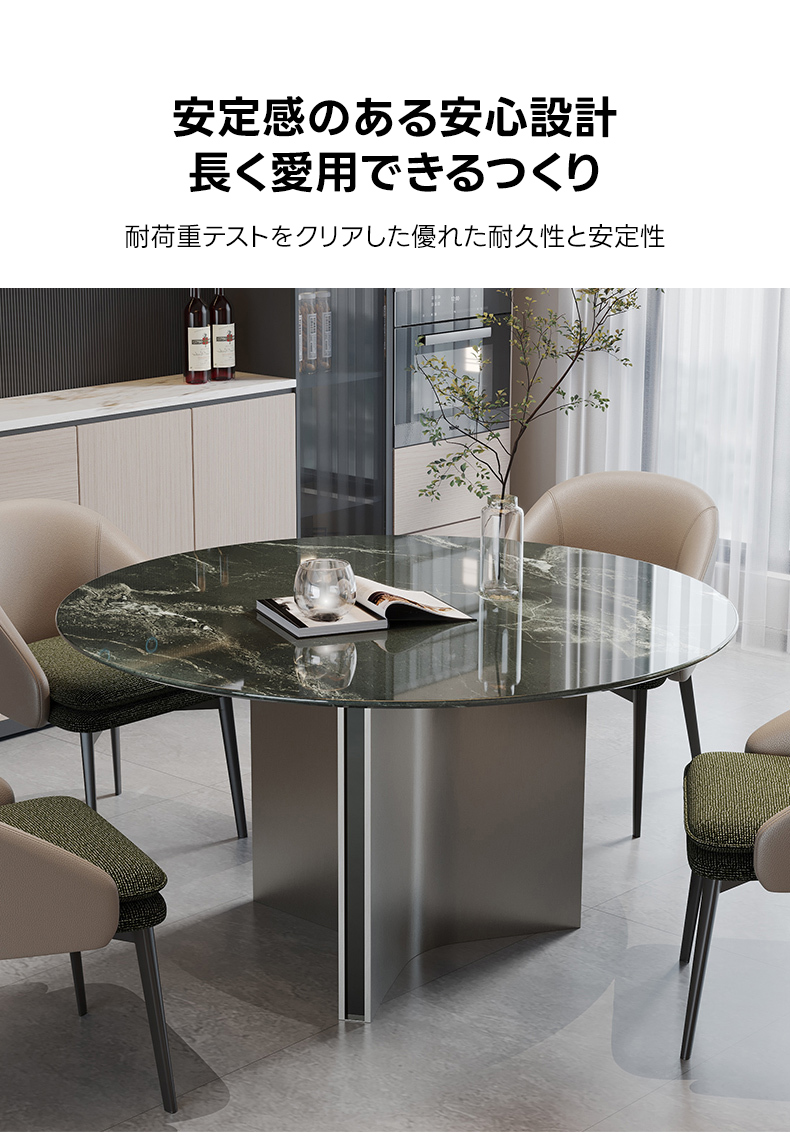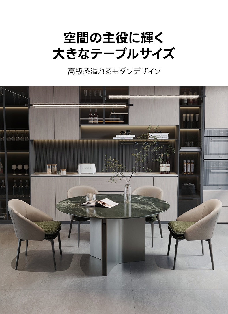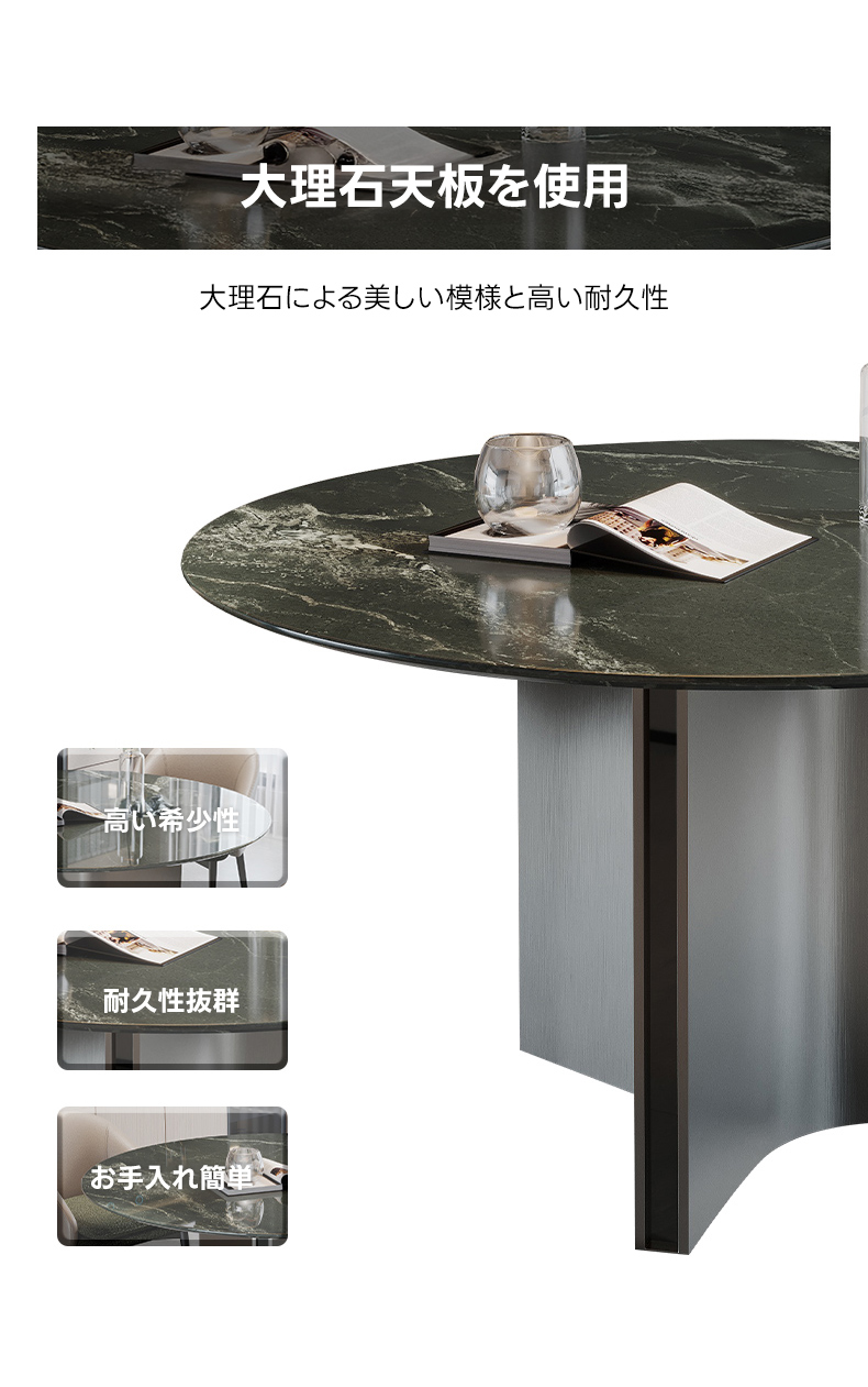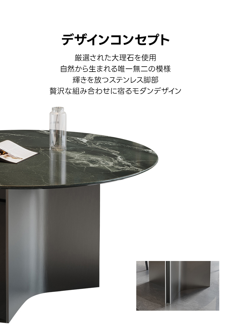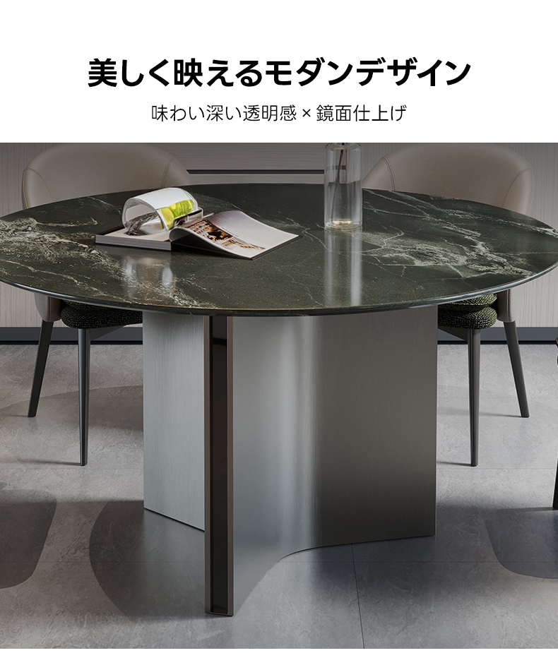 - 【高品質素材と洗練されたデザイン】モダン大理石円卓テーブルは、天然大理石とステンレスを使用し、高級感と耐久性を兼ね備えています。美しい鏡面仕上げが施され、どんな空間にも調和します。