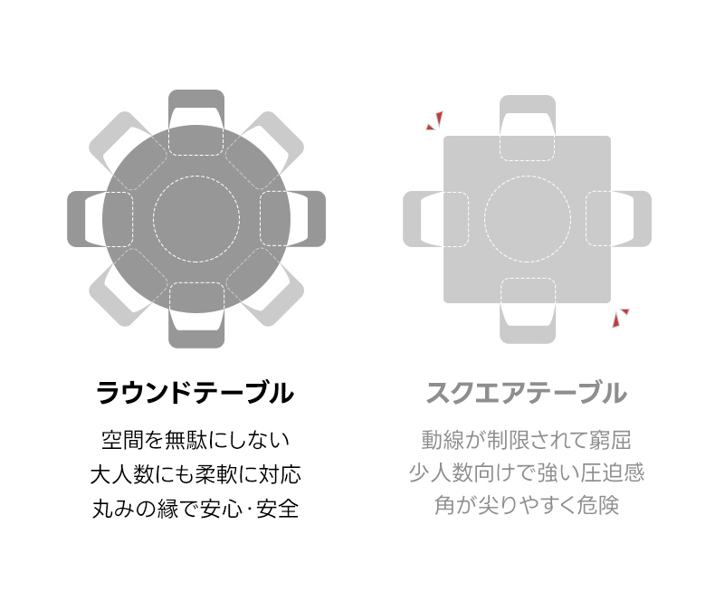 - 【安全性と快適性】滑らかな角丸加工が施されており、安全に使用できます。直径130cmの円形デザインは、空間を有効に活用し、柔軟な配置が可能です。