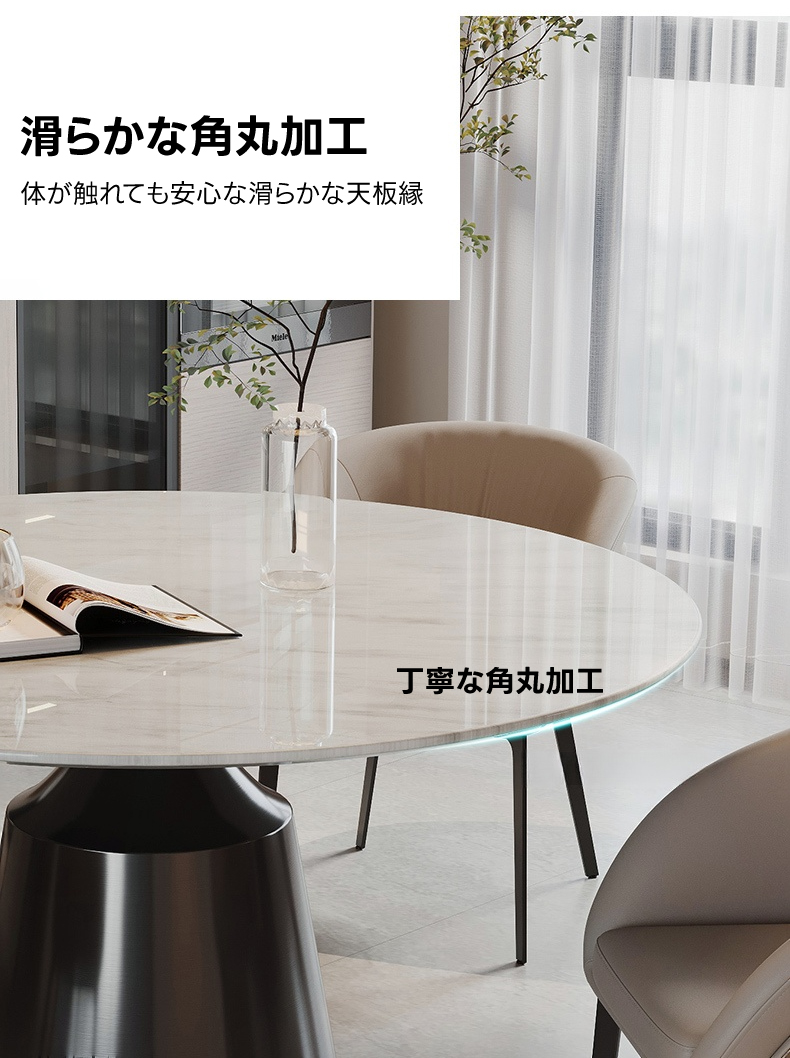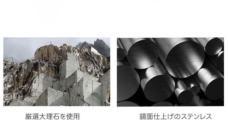 - 【高品質素材とデザイン】厳選された大理石とステンレス製の脚部を使用し、耐久性と美しさを兼ね備えています。モダンで洗練されたデザインは、滑らかな角丸加工により安全性も考慮されており、長く愛用できる一品です。