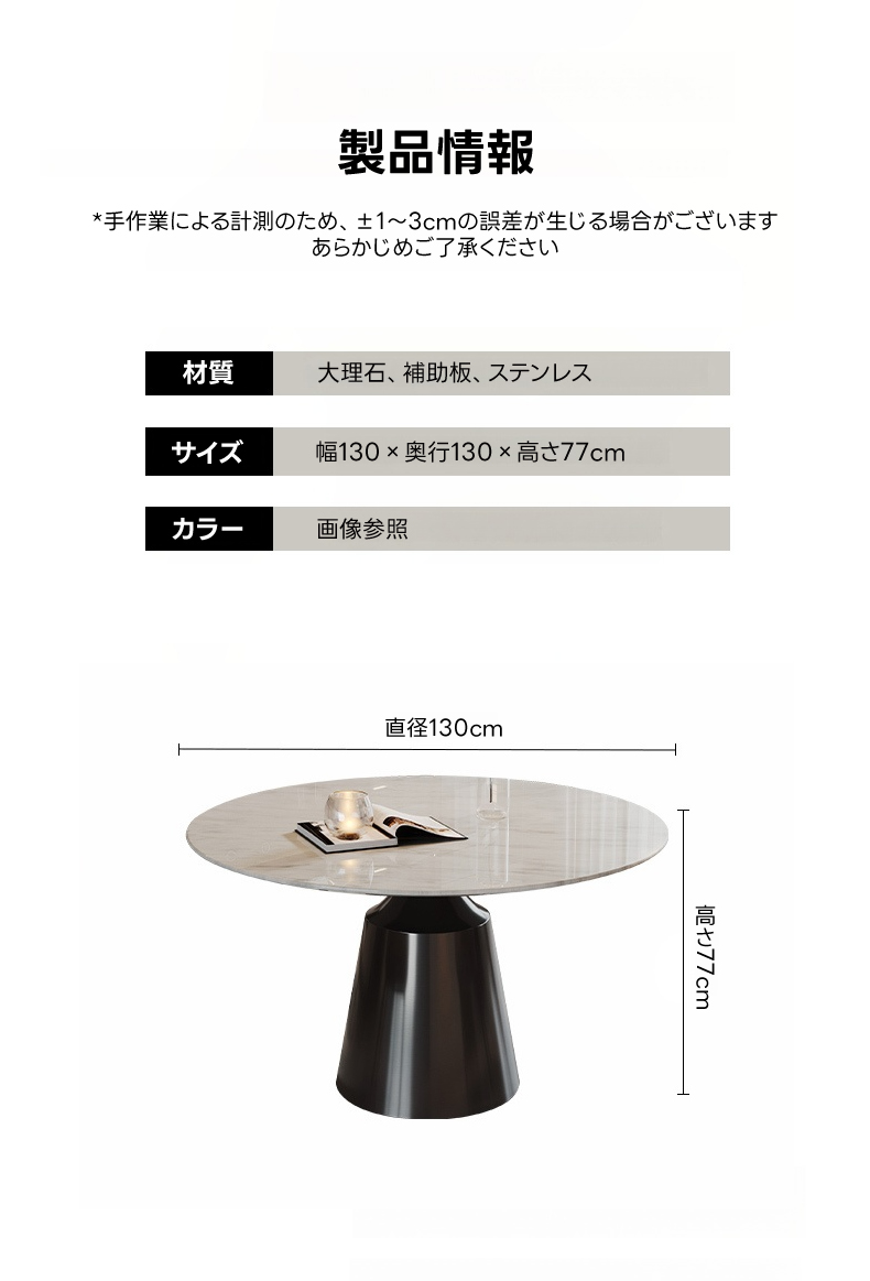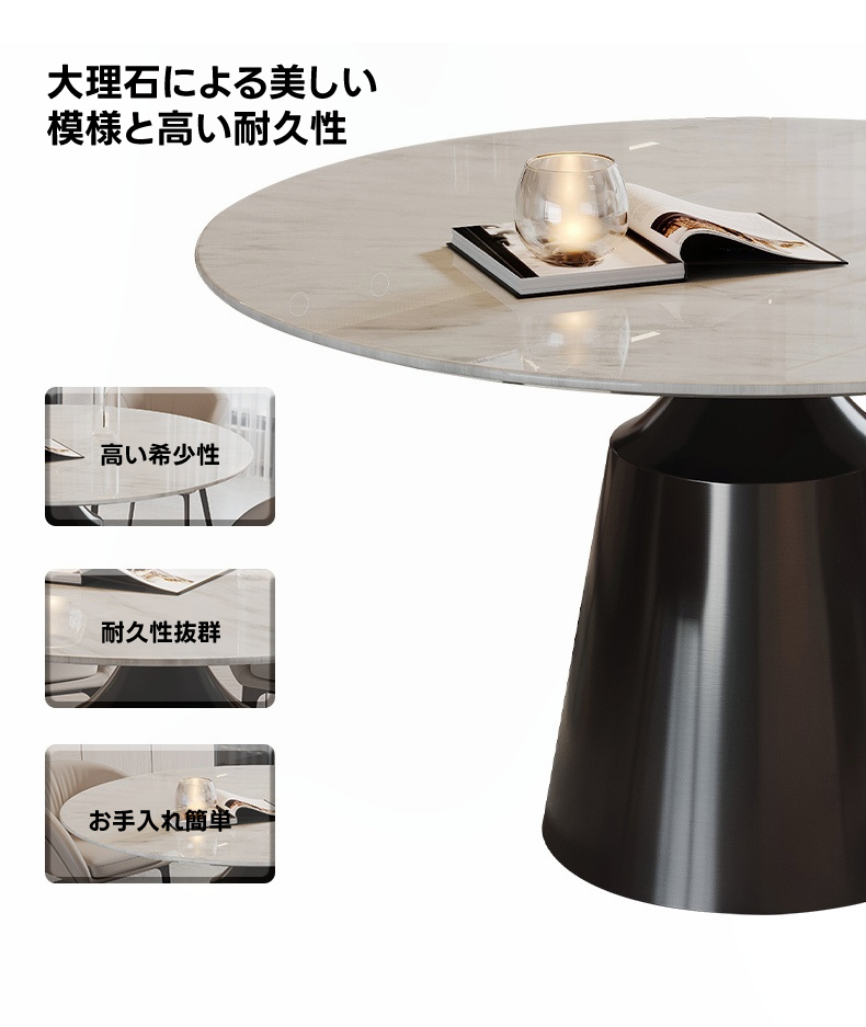 - 【ラグジュアリーな空間を演出】この大理石ラウンドベーステーブルは、ホワイトの高級感あふれる大理石天板を特徴としており、どんなインテリアにも調和します。直径130cmの円形デザインは、ダイニングやリビングにぴったりで、特別なひとときを演出します。