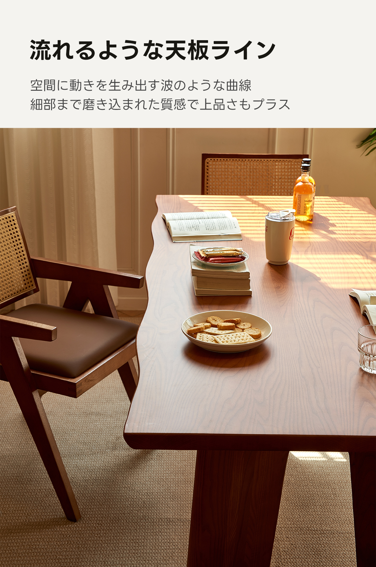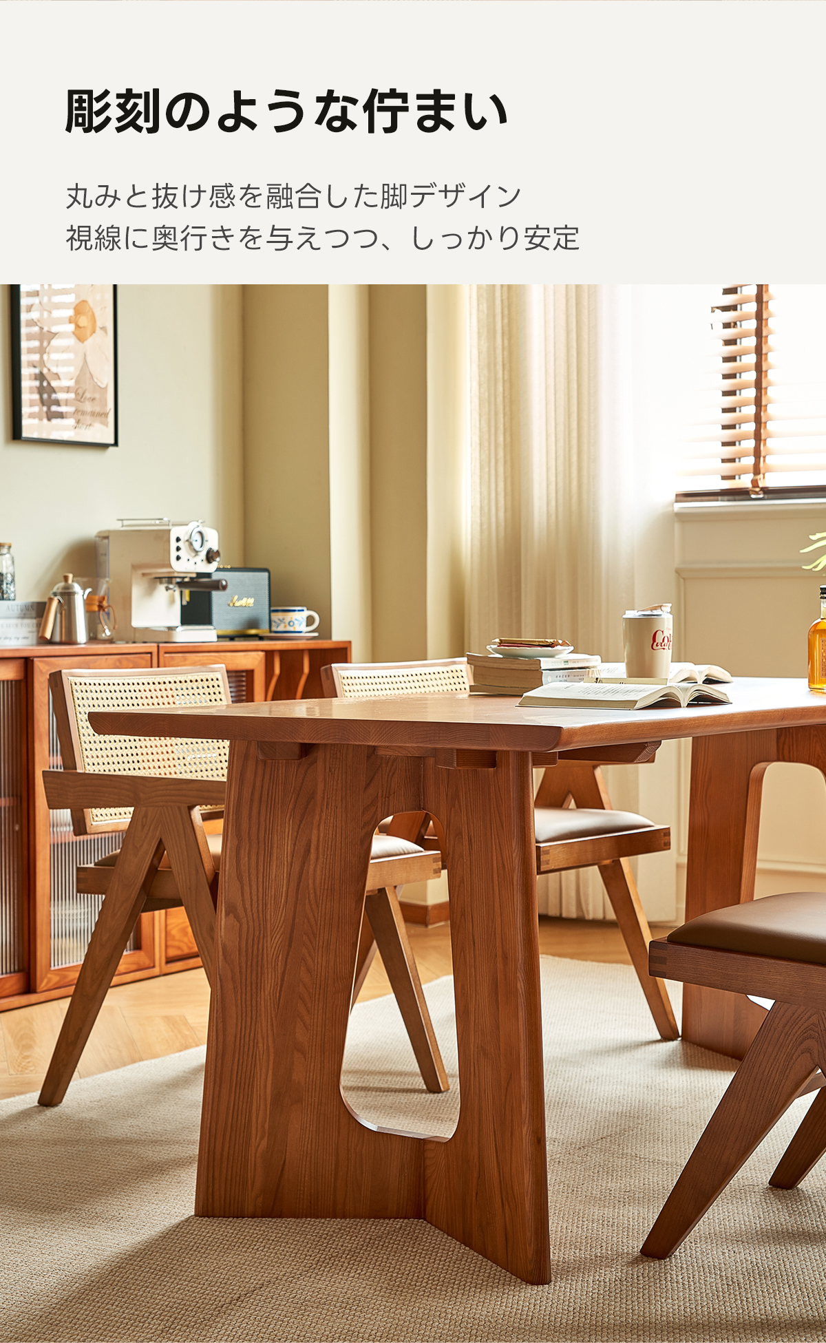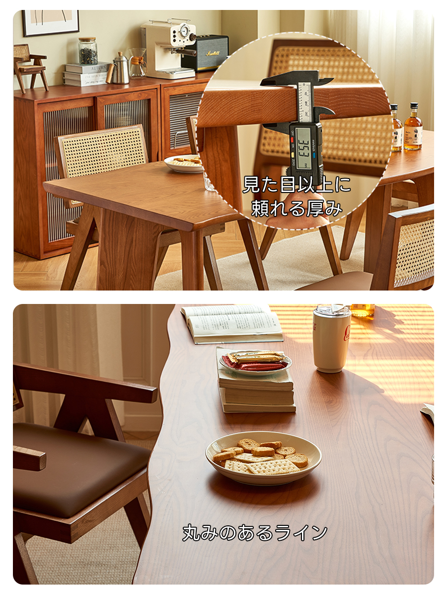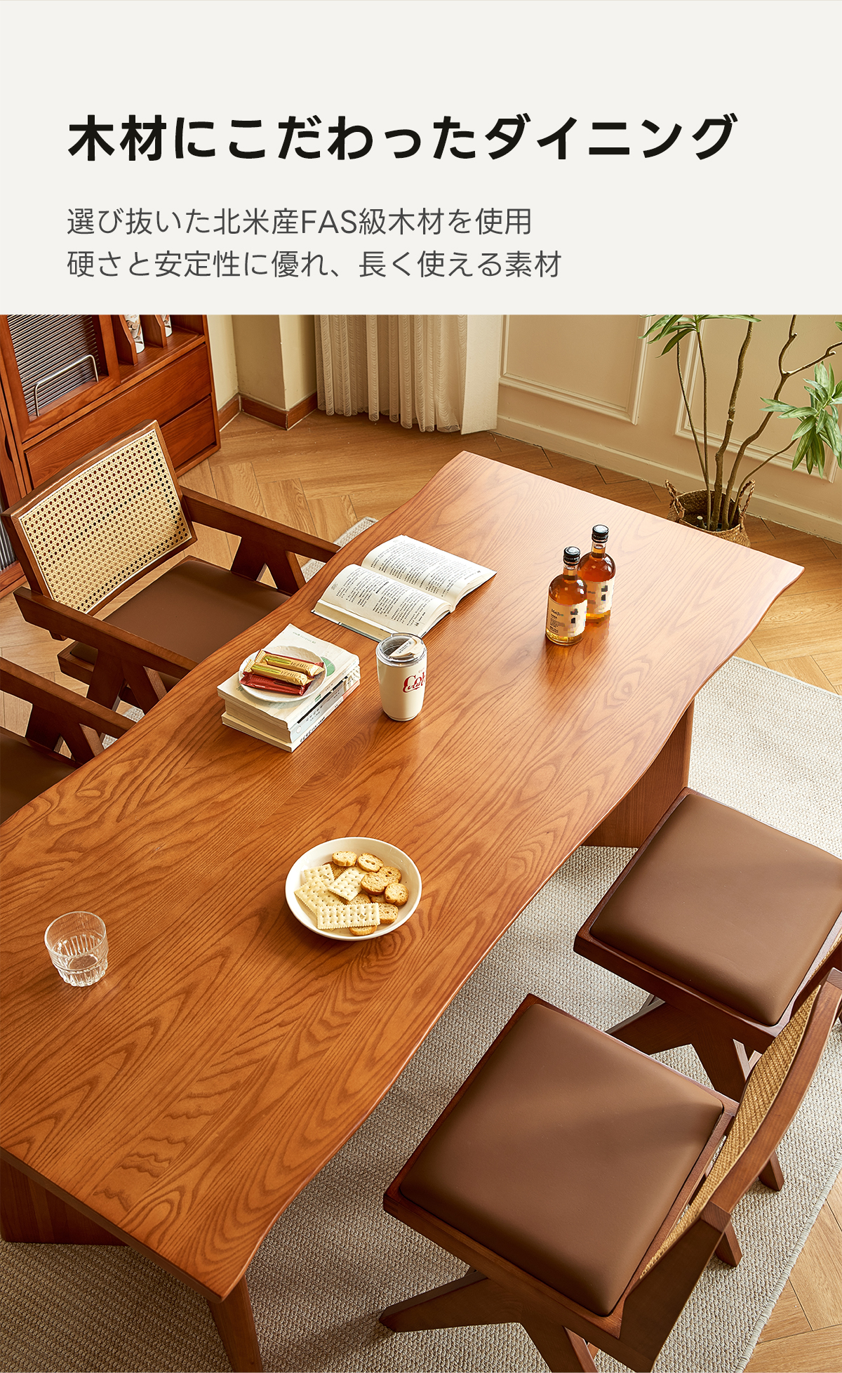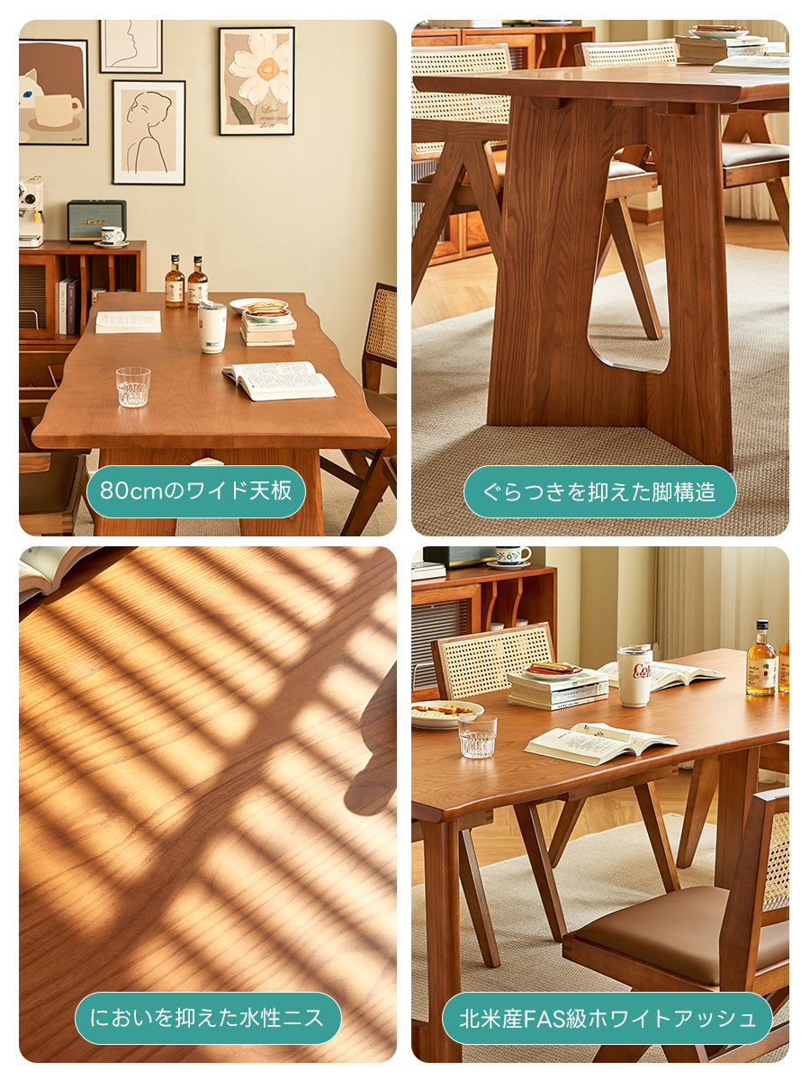 - 【高品質な素材と美しいデザイン】北米産FAS級ホワイトアッシュ材を使用し、硬さと安定性に優れています。自然な木目が美しく、厚さ3.5cmの頑丈な天板は、日常使いでも安心してお使いいただけます。